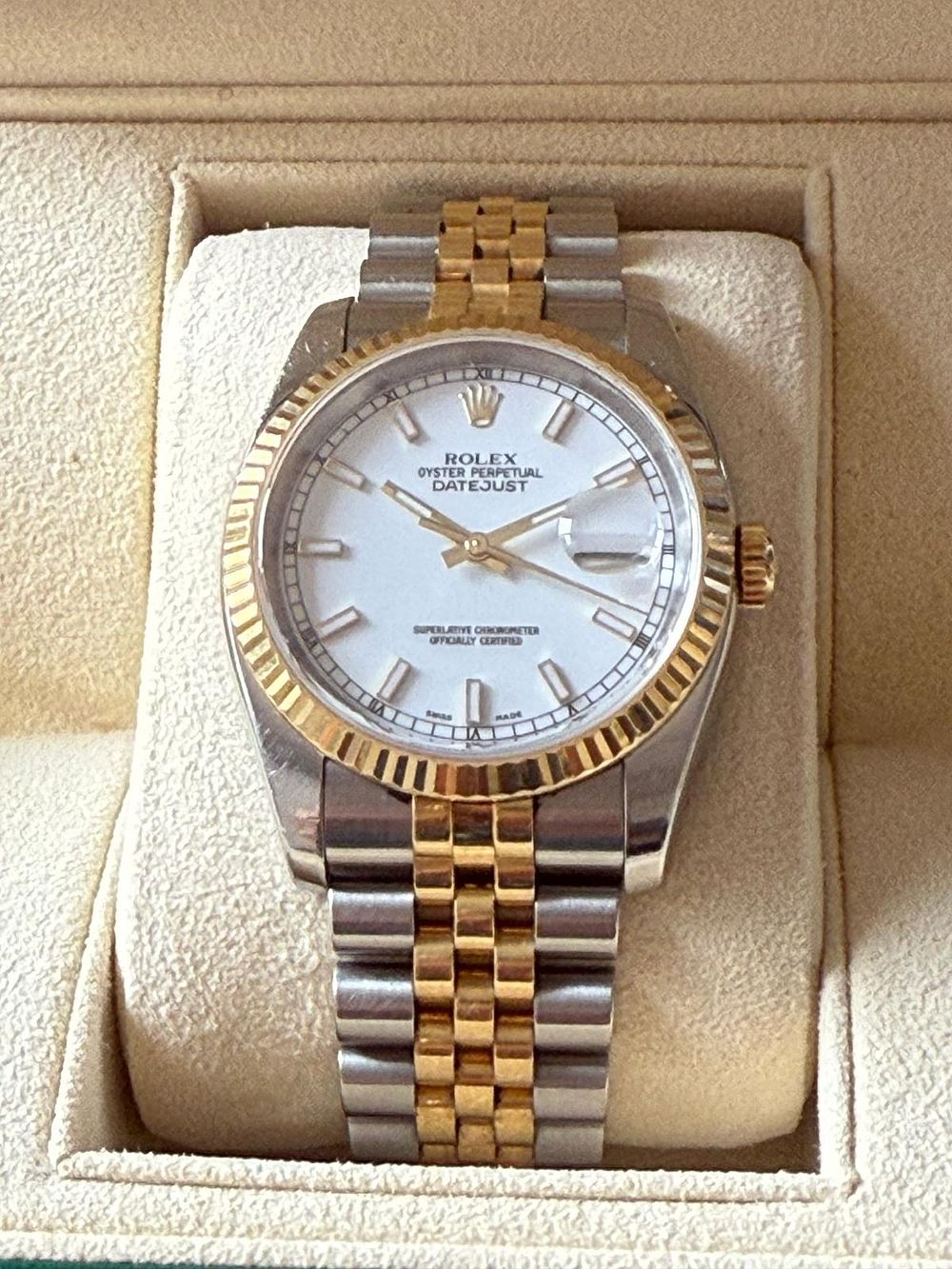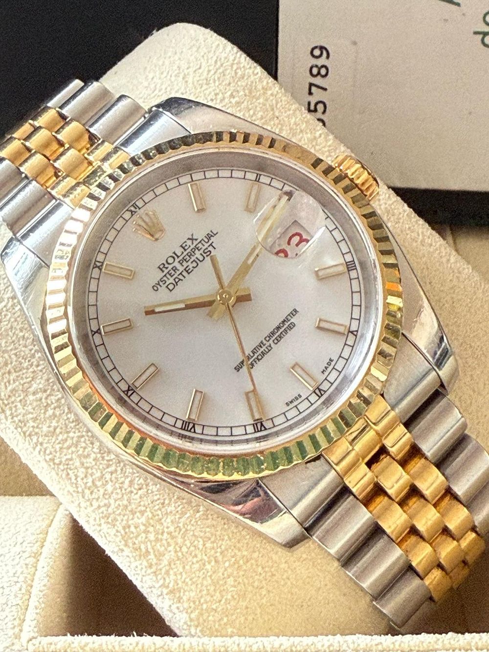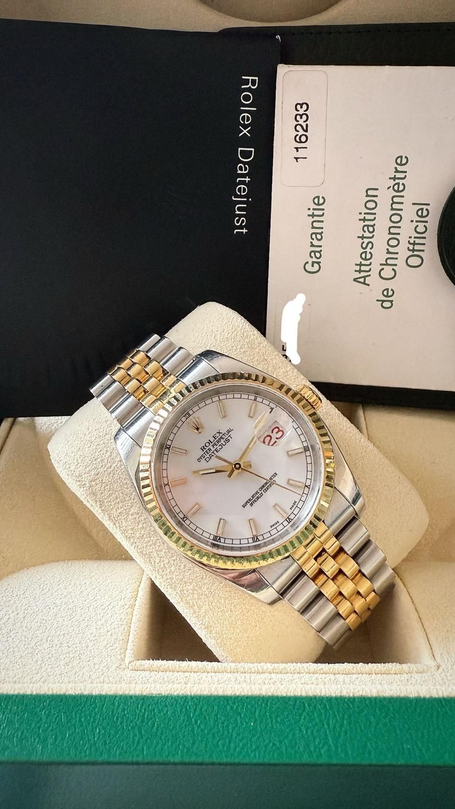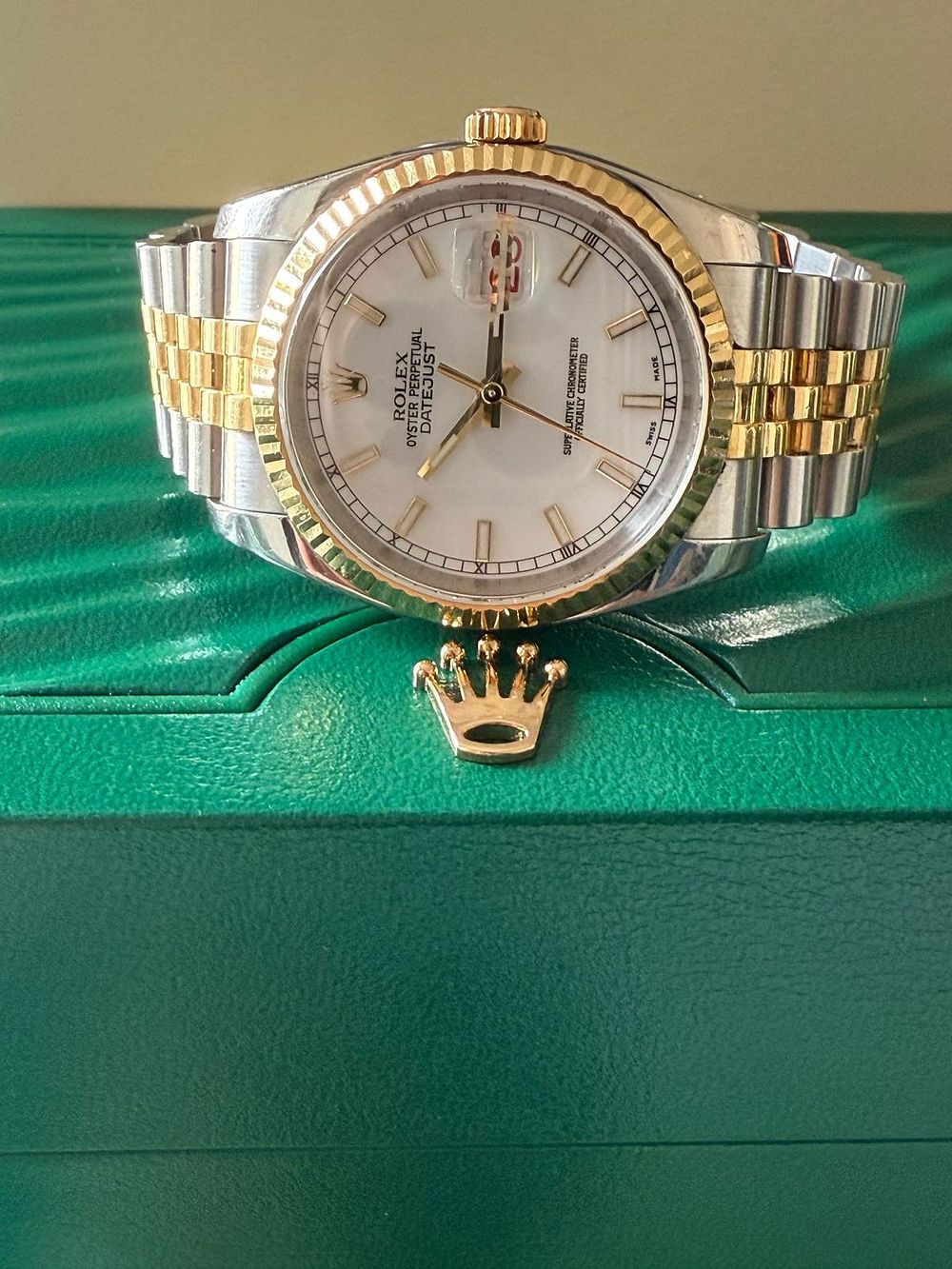 Marca Rolex Modello (Orologio) Datejust 36 Numero di referenza 116233 Quadrante con degrade con diamanti Lunetta aftermarket con diamanti veri Carica Automatico Materiale della cassa Oro/Acciaio Materiale cinturino Oro/acciaio Anno 2005 Condizione Usato (Ottimo) L'articolo presenta segni di usura lievi, come ad esempio graffi leggeri, ma non percepibili al tatto. Corredo documenti originali, no box la scatola utilizzata solo per fotografie non in vendita Diametro 36 mm Impermeabile 10 ATM Materiale lunetta Oro giallo Vetro Vetro zaffiro Cinturino Materiale cinturino Oro/acciaio Colore cinturino Oro/acciaio