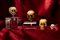 QUATTRO MEMENTO MORI RAFFIGURANTI TESCHI IN AVORIO INTAGLIATO E TRAFORATO. NORD EUROPA, INIZIO SECOLO XX. DUE CON BASE IN PLEXIGLASS