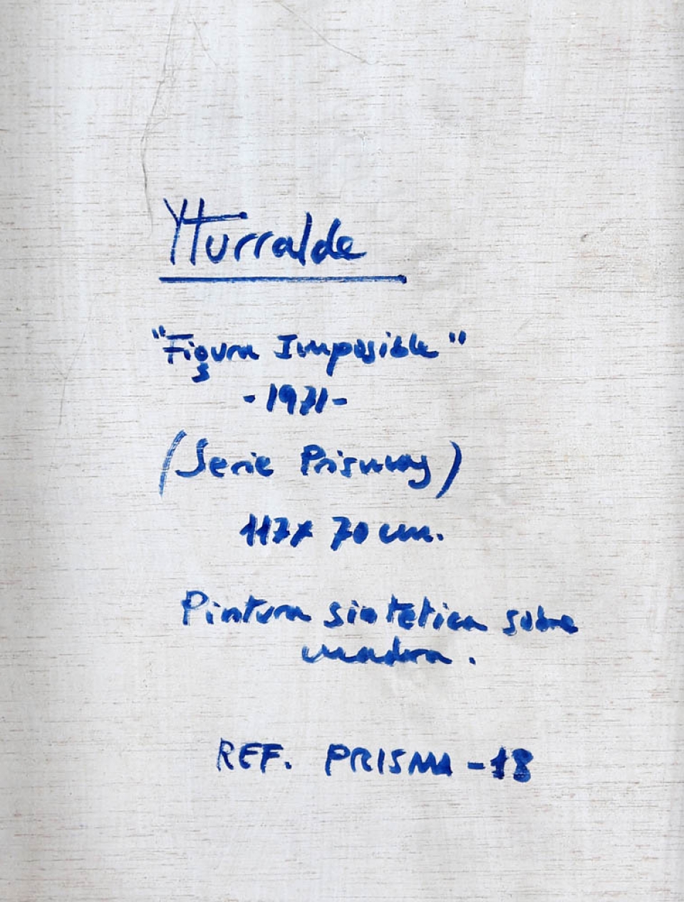 JOSE' MARIA YTURRALDE 1942 " Figura impossibile ", 1971 Pittura sintetica su tavola, cm. 117 x 70 Firmato e datato sul retro Prov. Collezione Privata