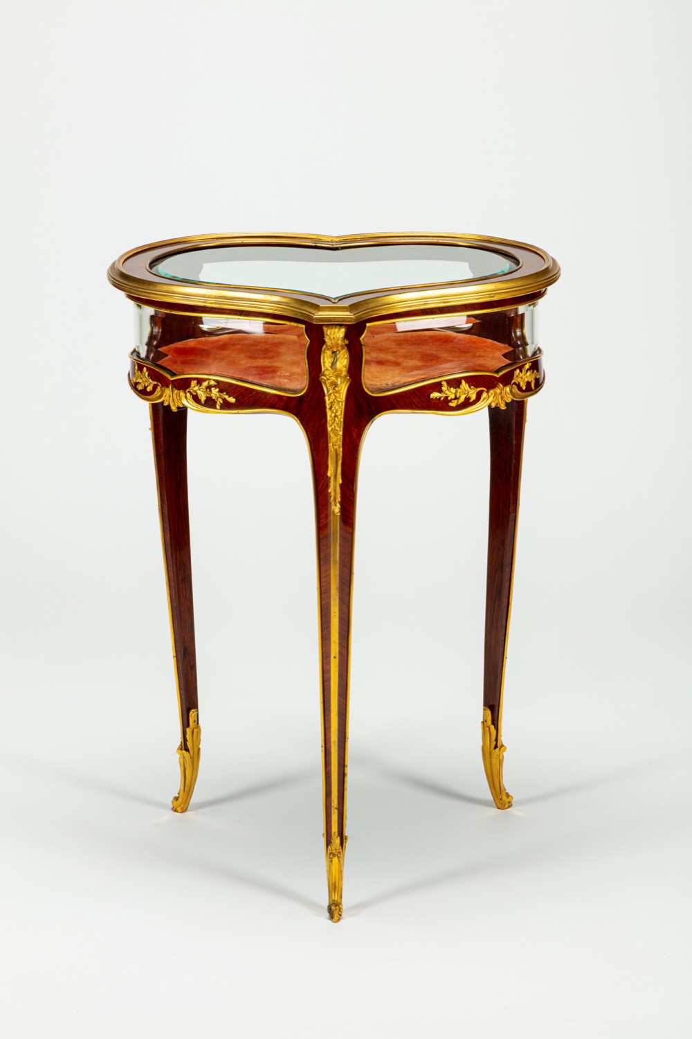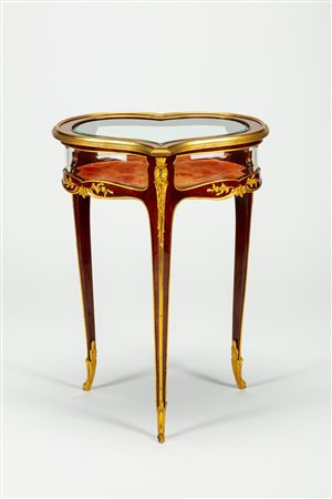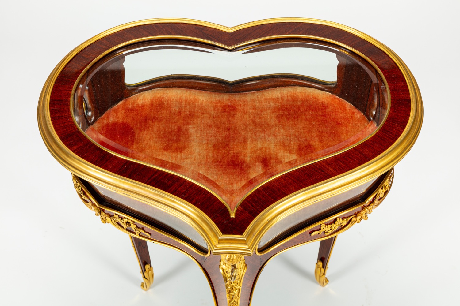 Tavolino a vetrina a forma di cuore montato con bronzi dorati di Joseph-Emmanuel Zwiener, Francia, circa 1880