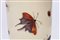 Profili e bordure in oro, decoro policromo "a farfalle e insetti" sparsi a rilievo.