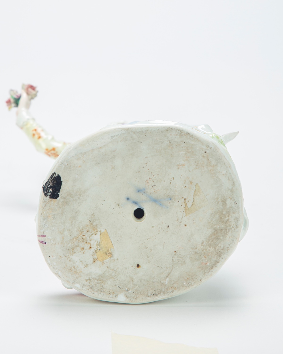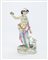 in porcellana policroma, raffigurato con bouquet di fiori in mano su base a rocaille. Marca di fabbrica.in porcellana policroma, raffigurato con bouquet di fiori in mano su base a rocaille. Marca di fabbrica.
