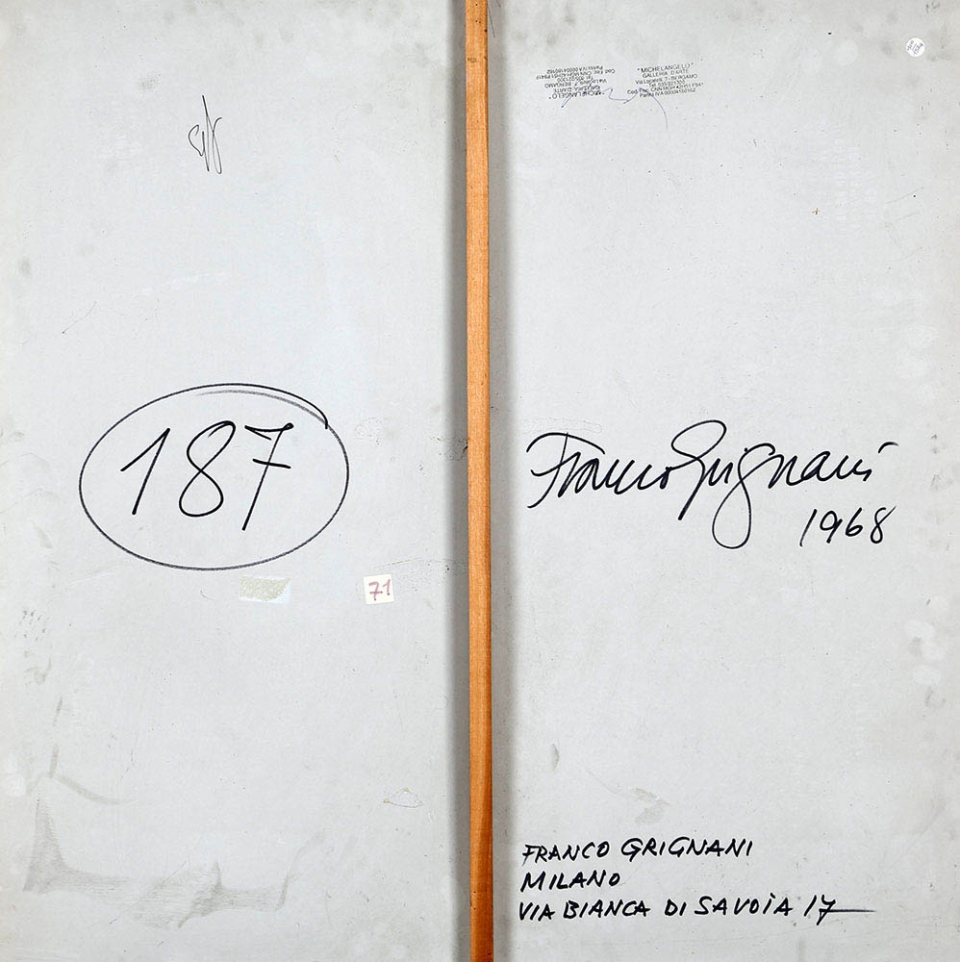 FRANCO GRIGNANI 1908 - 1999 " Psicoplastica 187 ", 1968 Acrilico su cartone schoeller, cm. 70 x 70 Firmato e datato sul retro Autentica di Manuela Grignani su fotografia Timbro Galleria d'Arte Michelangelo Bergamo sul retro Prov. Collezione Privata