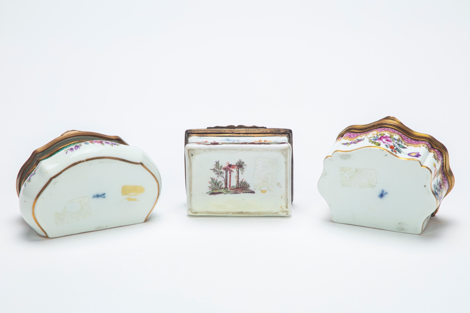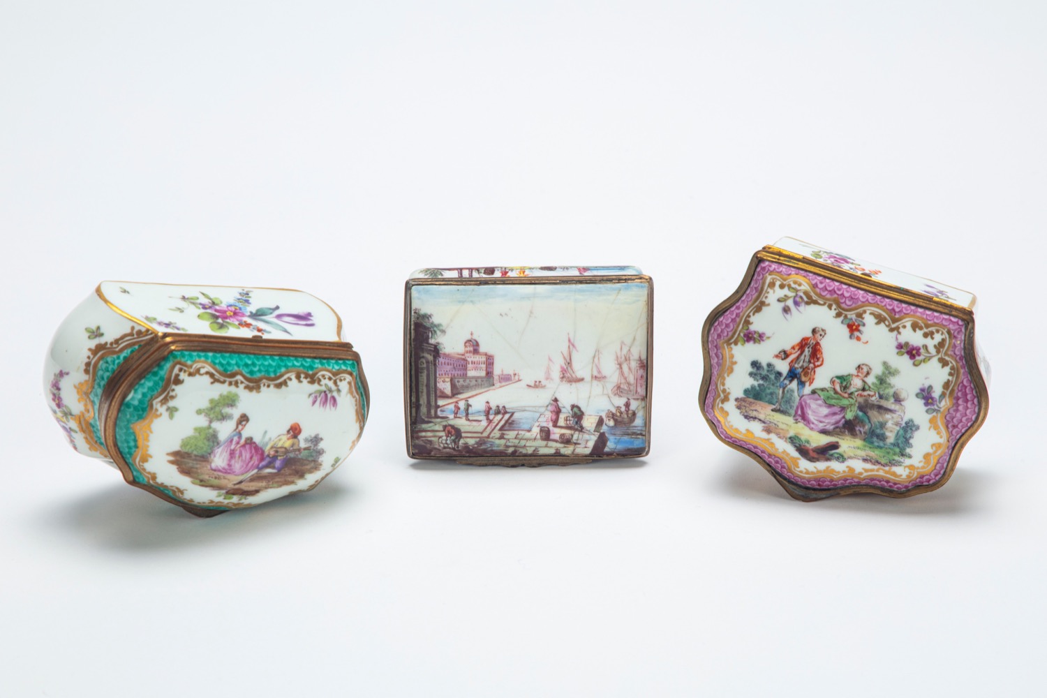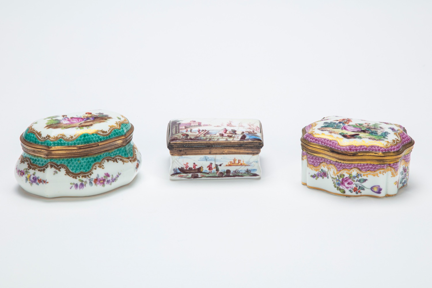 Tre tabacchiere in porcellana. Manifatture del secolo XIX