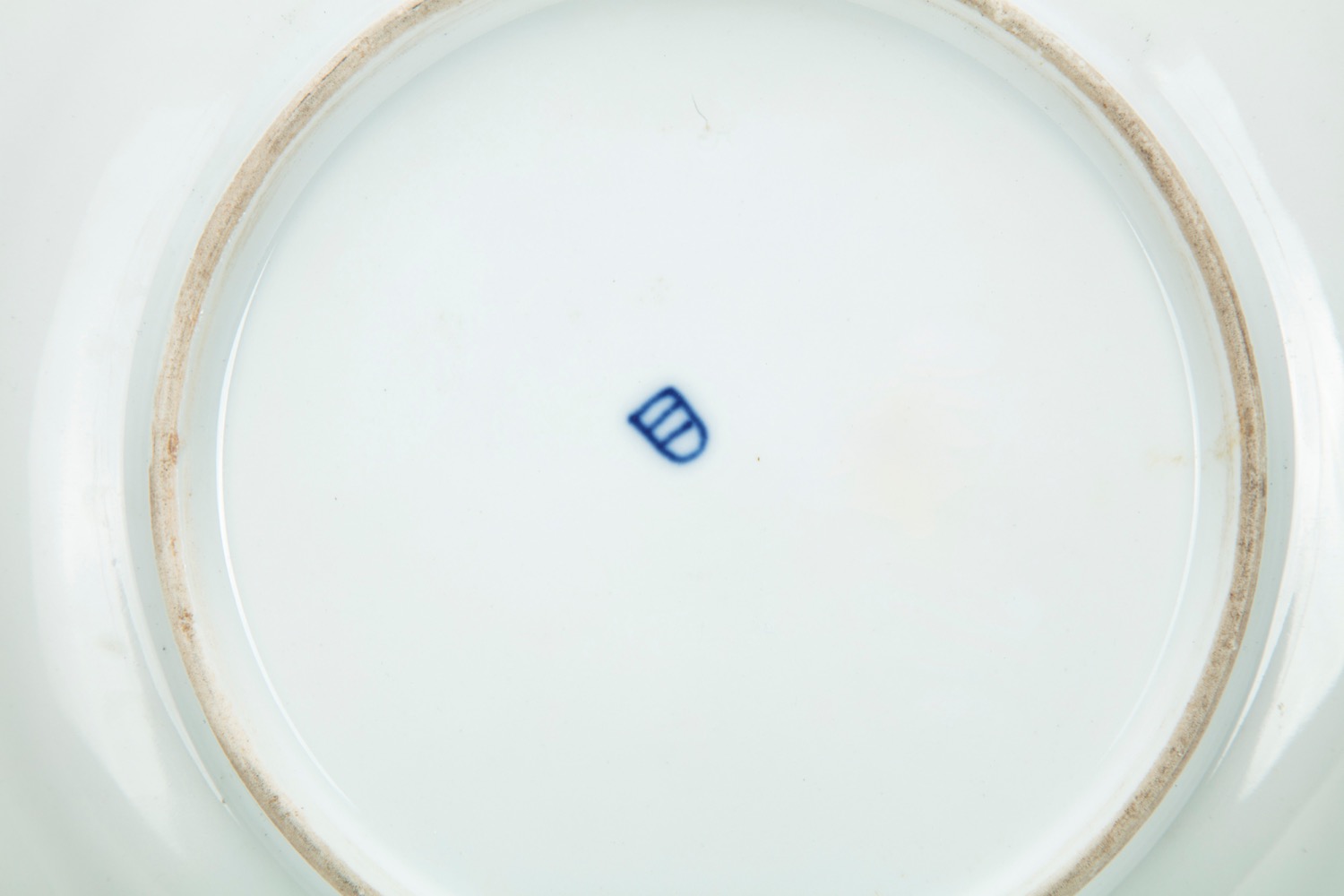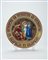 Cavetto decorato con scena mitologica raffigurante Venere che presenta Elena a Paride firmata Perger (probabilmente Sigmund Ferdinand Ritter von Perger, pittore attivo nella manifattura di Vienna fino al 1808), nella tesa turchese riserve dorate a rilievo con putti alati intervallati a fenici tra vaso e girali fogliati su fondo porpora. Marca di fabbrica Cavetto decorato con scena mitologica raffigurante Venere che presenta Elena a Paride firmata Perger (probabilmente Sigmund Ferdinand Ritter von Perger, pittore attivo nella manifattura di Vienna fino al 1808), nella tesa turchese riserve dorate a rilievo con putti alati intervallati a fenici tra vaso e girali fogliati su fondo porpora. Marca di fabbrica
