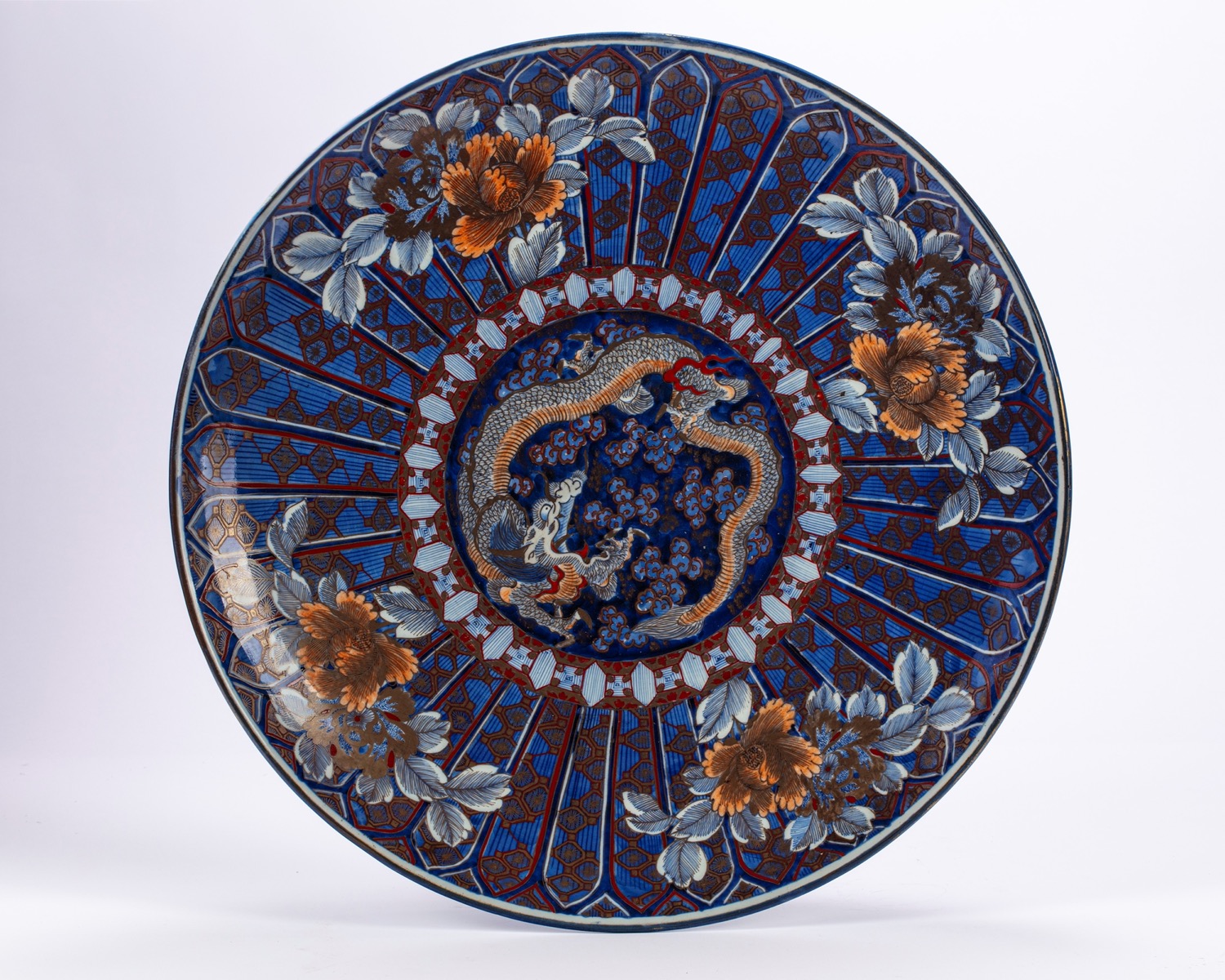 Grande piatto in porcellana policroma. Giappone, secolo XIX