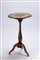 sostegno tripode con fusto a balaustro sfaccettato e filettato in metallo dorato.