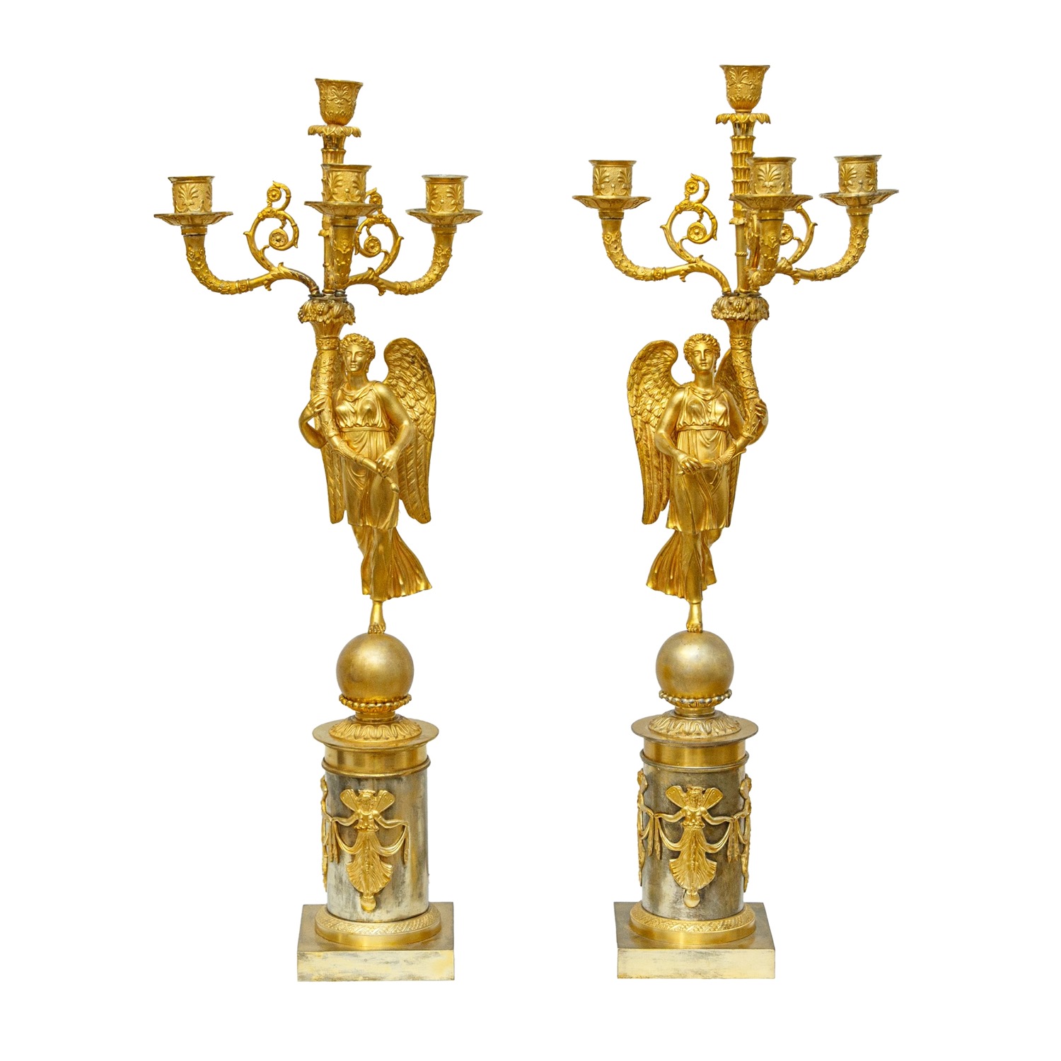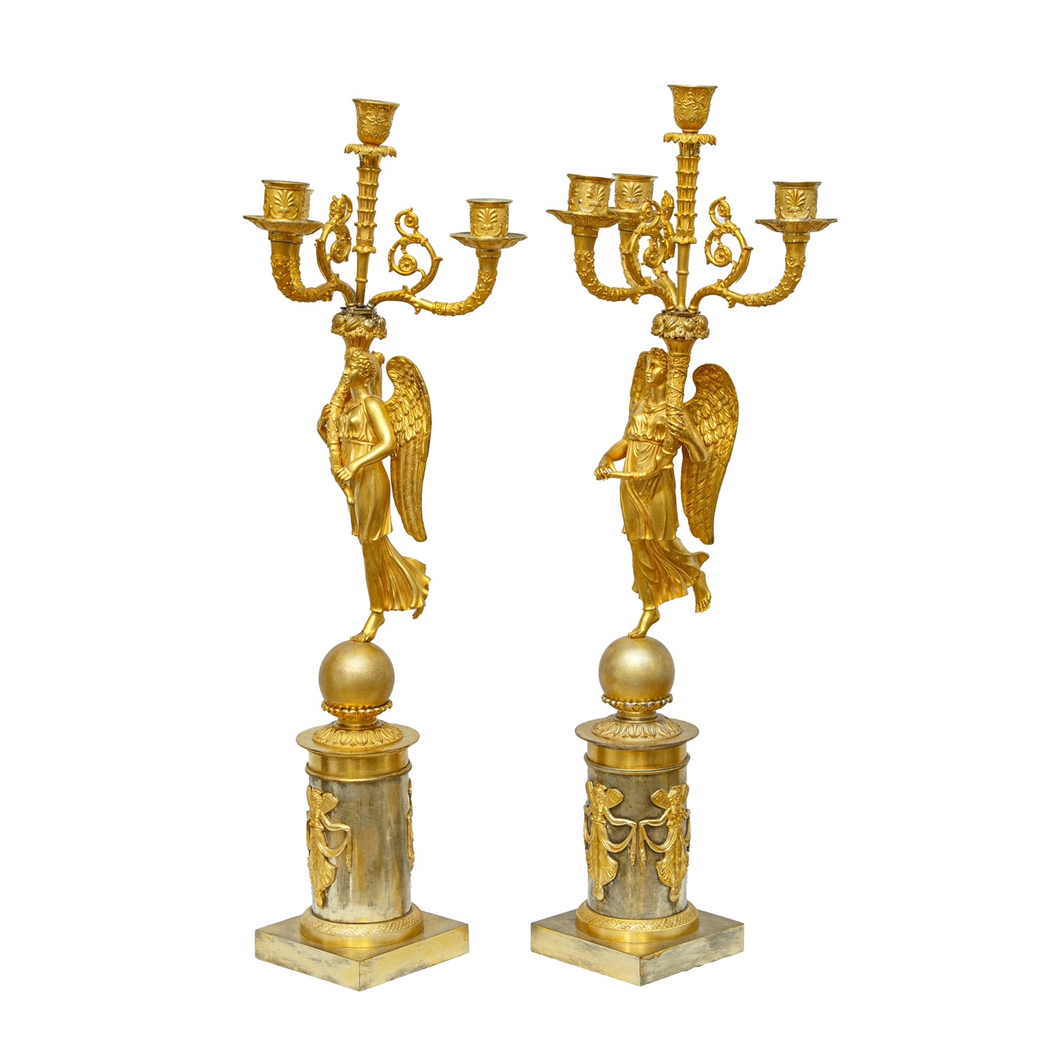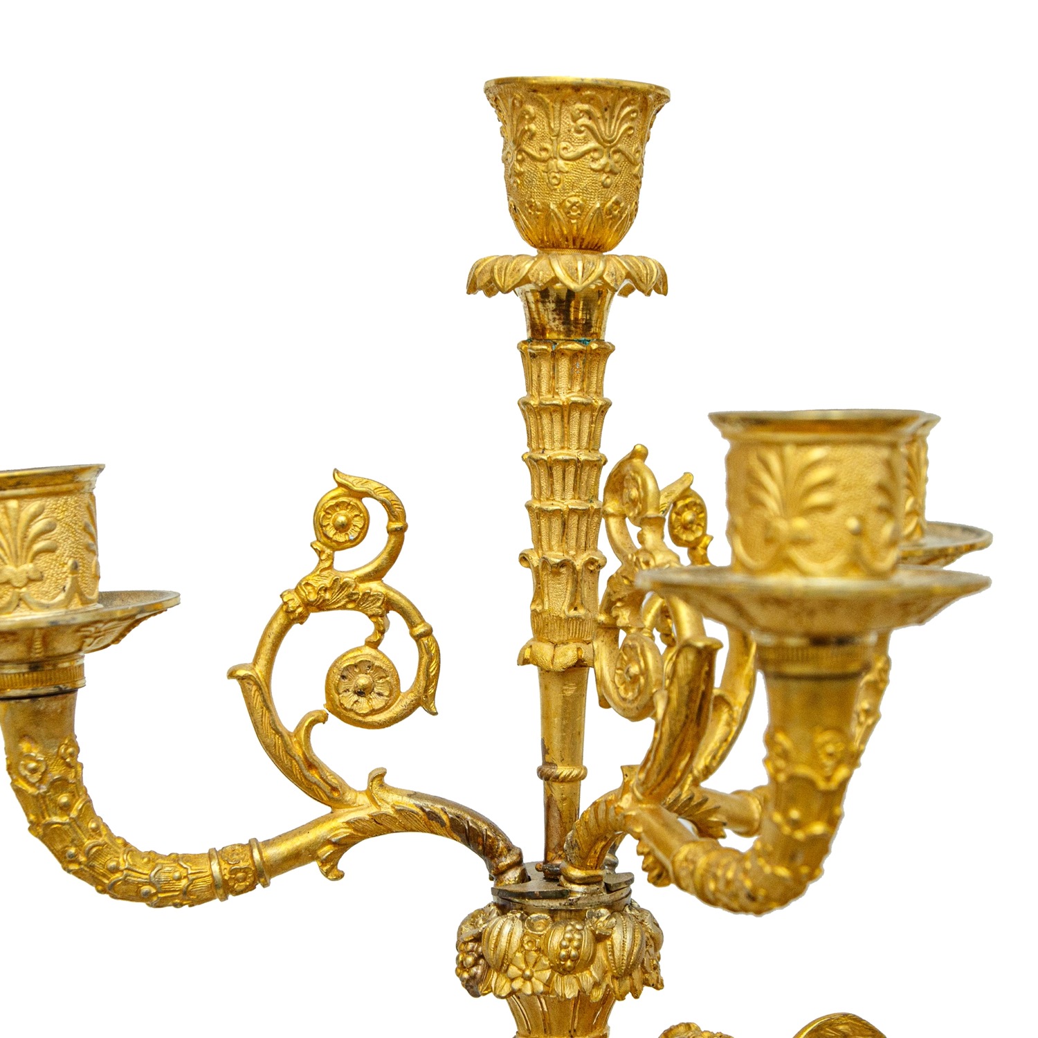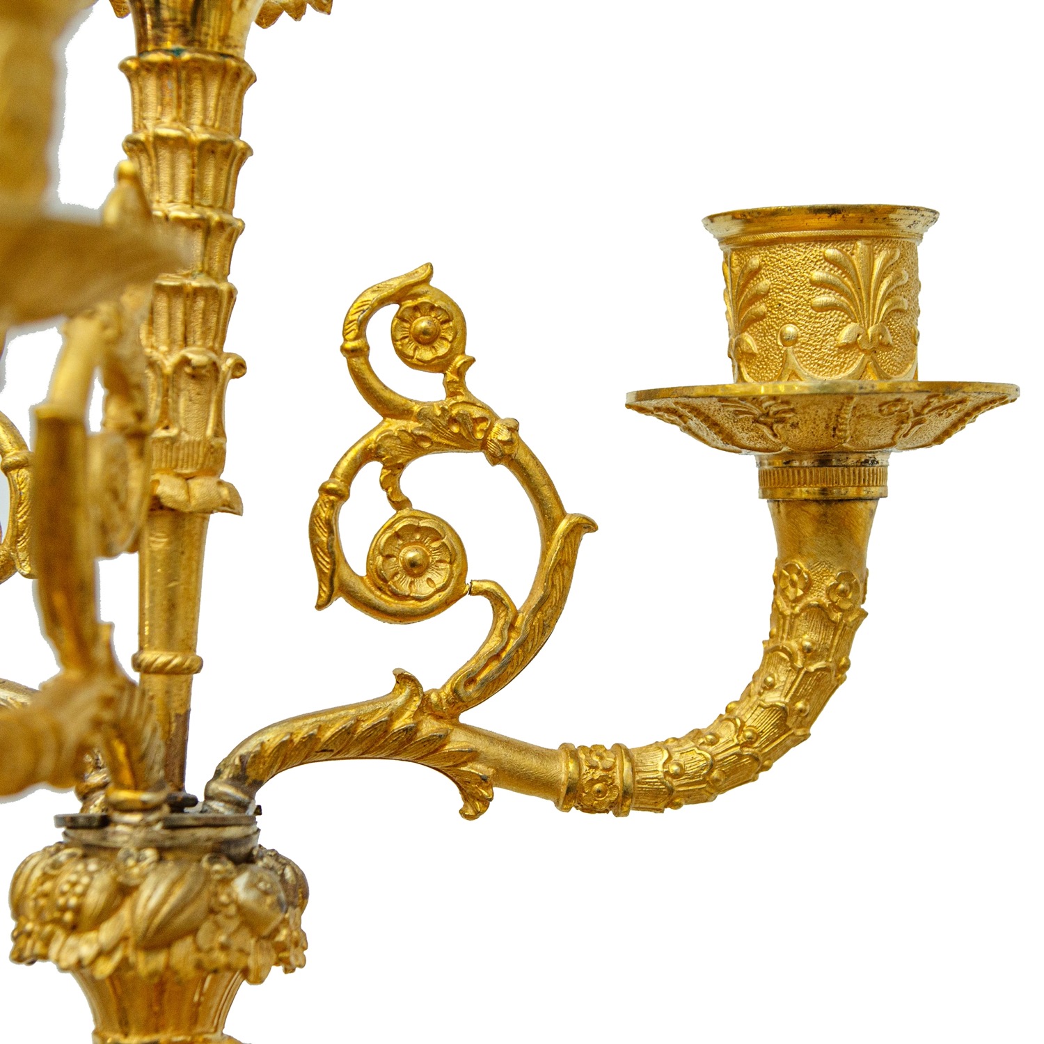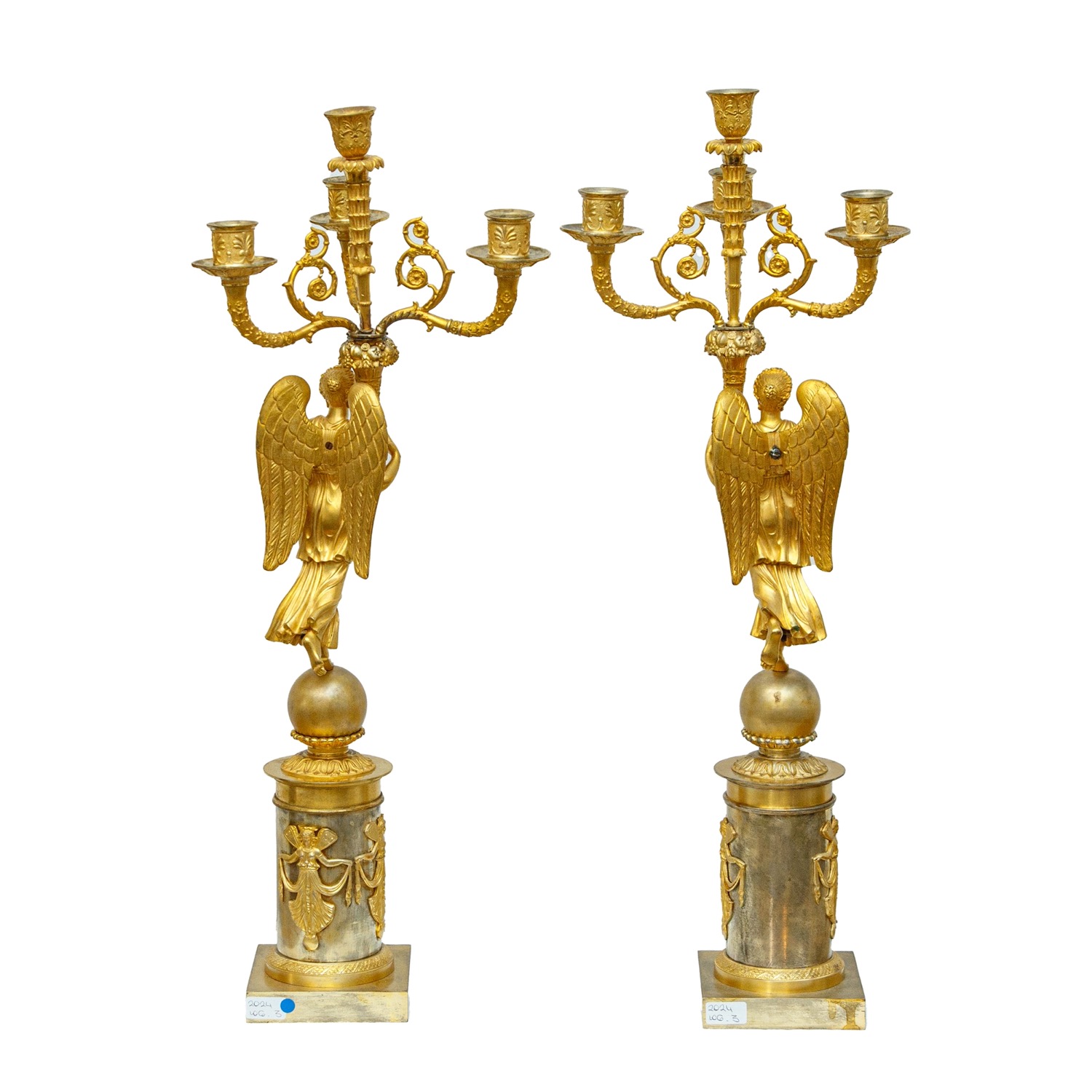 Coppia di candelabri a quattro luci in bronzo dorato. Francia,sec XIX
