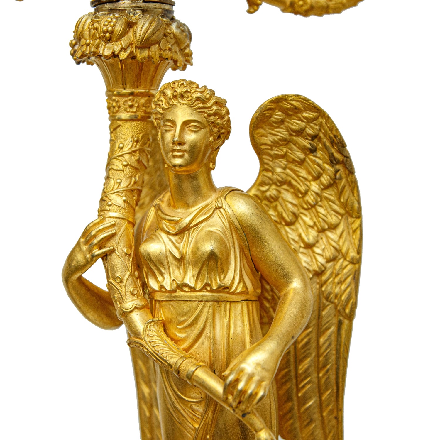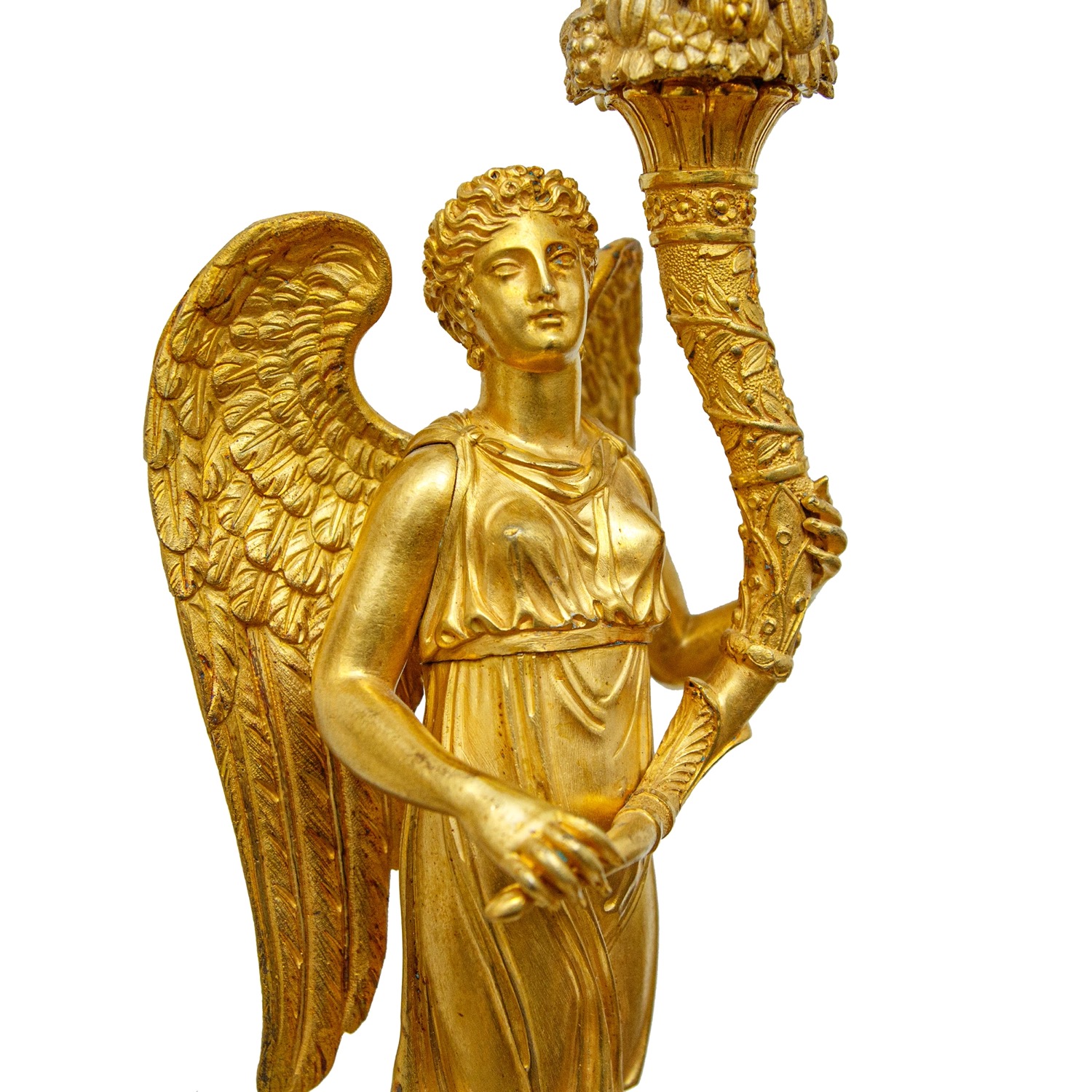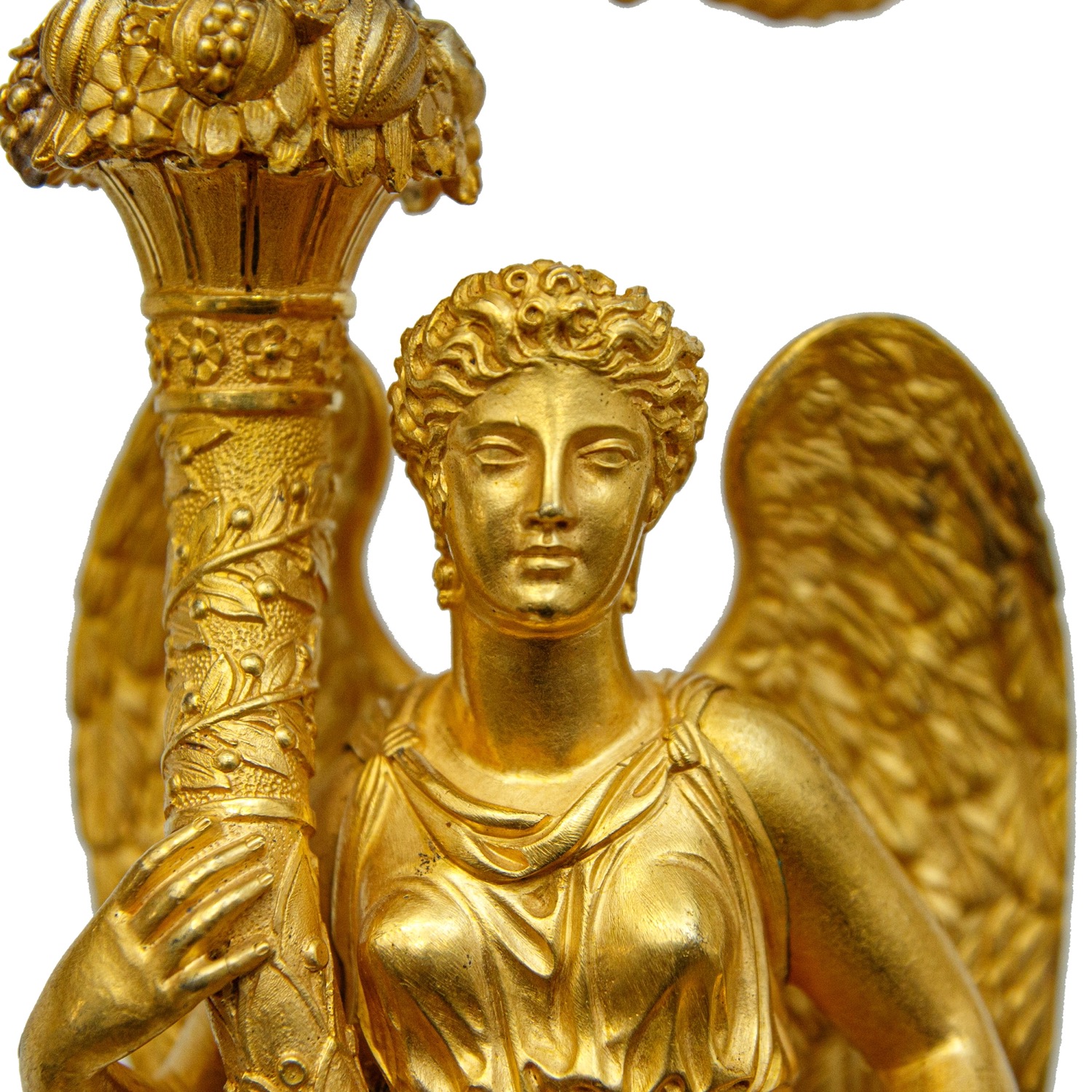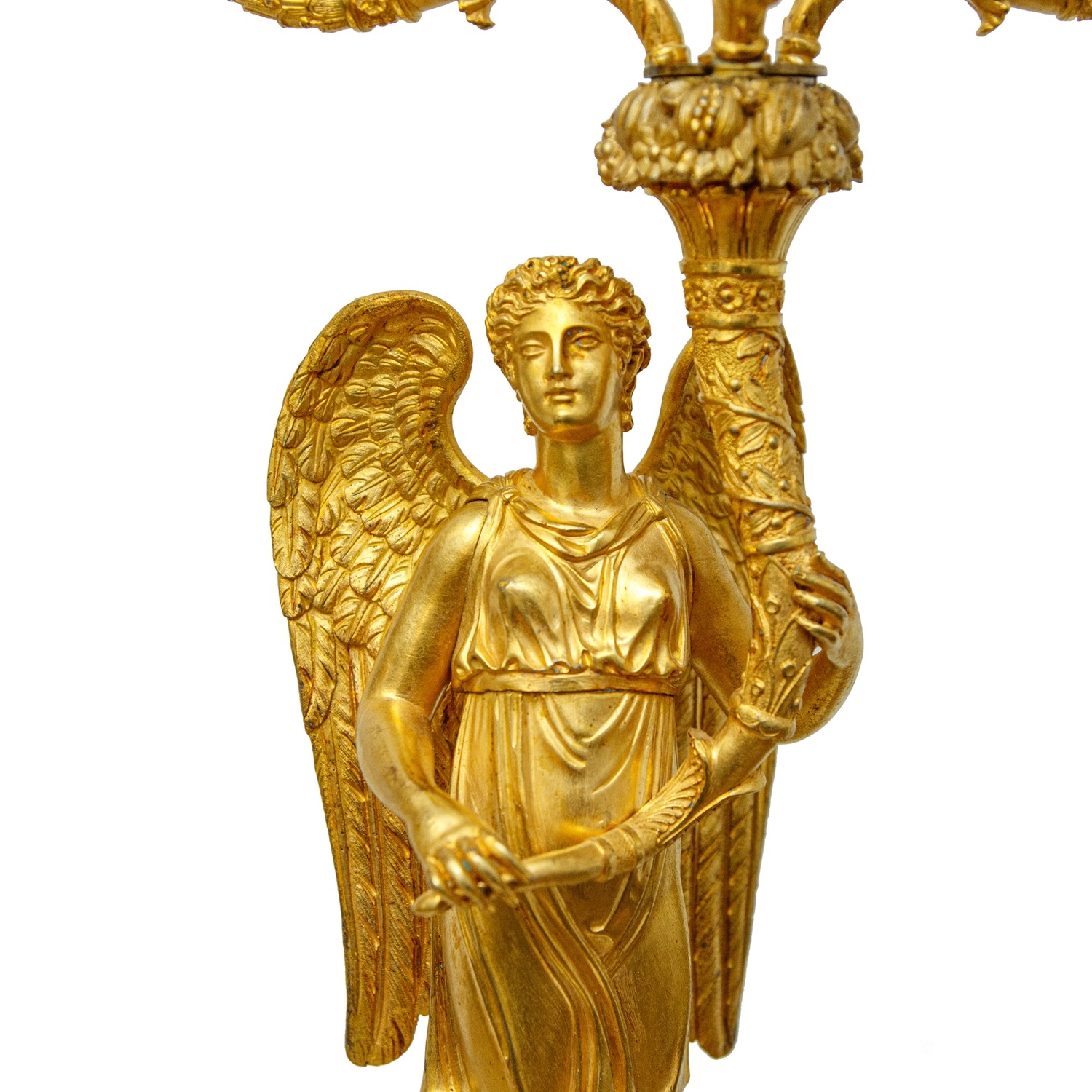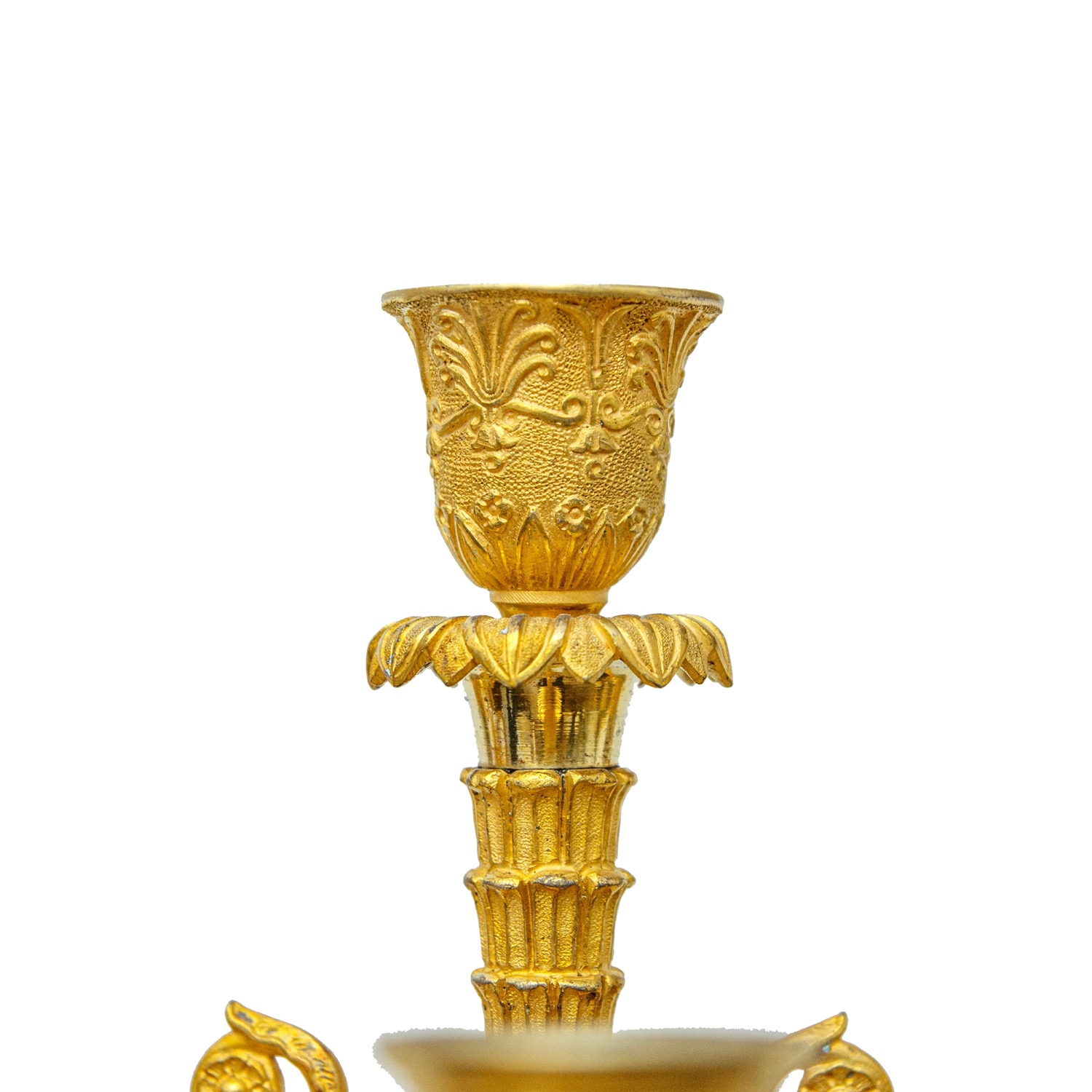 Coppia di candelabri a quattro luci in bronzo dorato. Francia,sec XIX