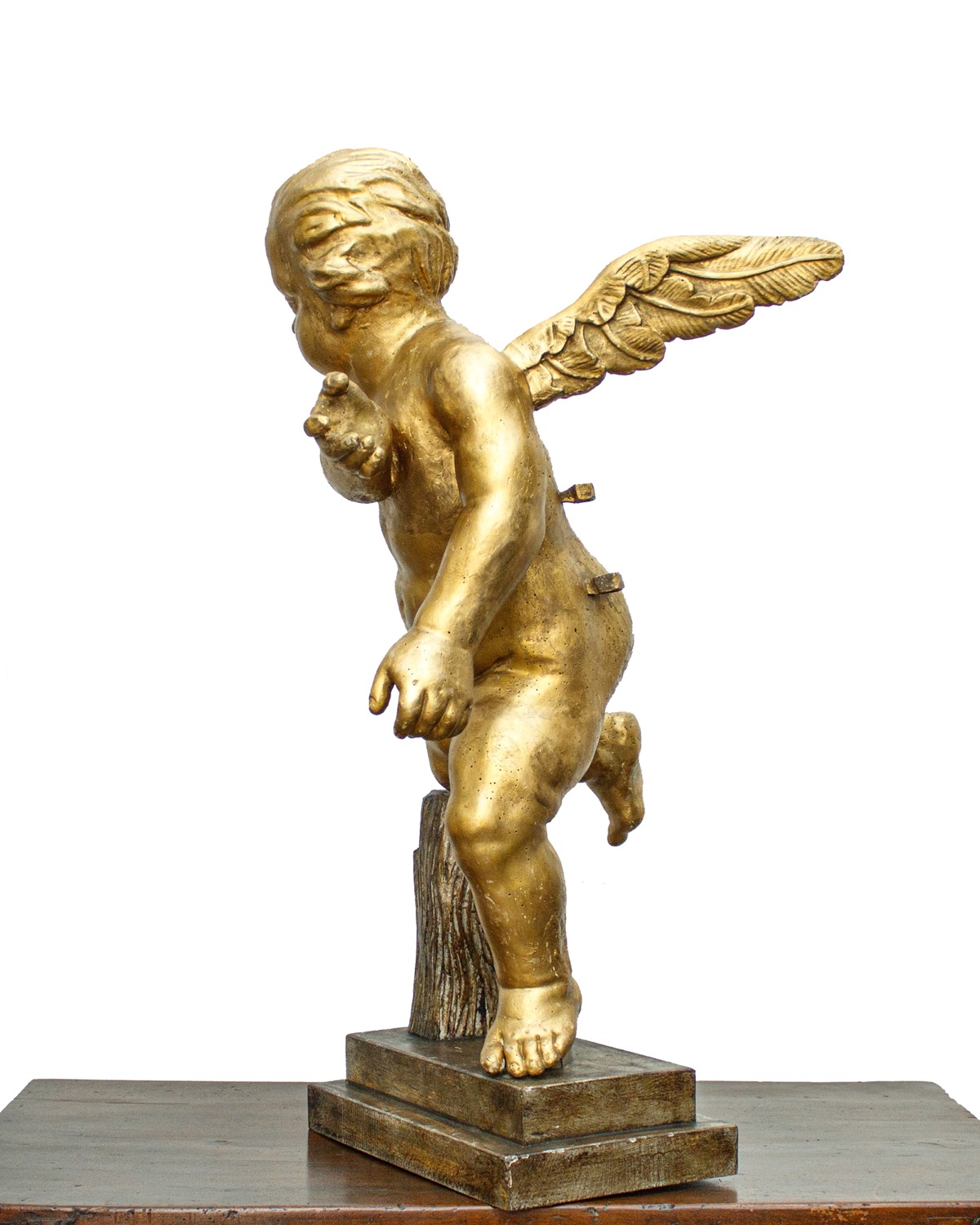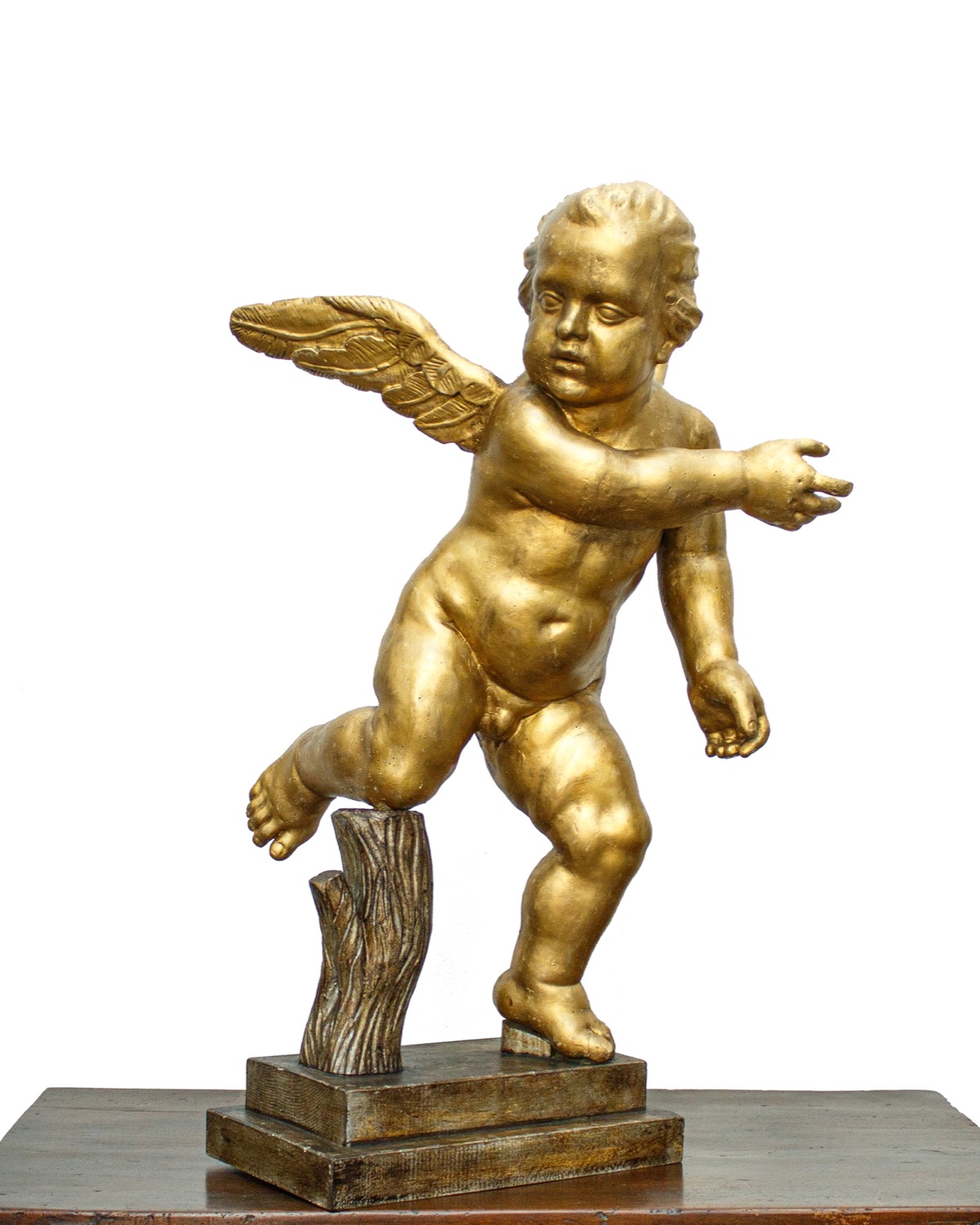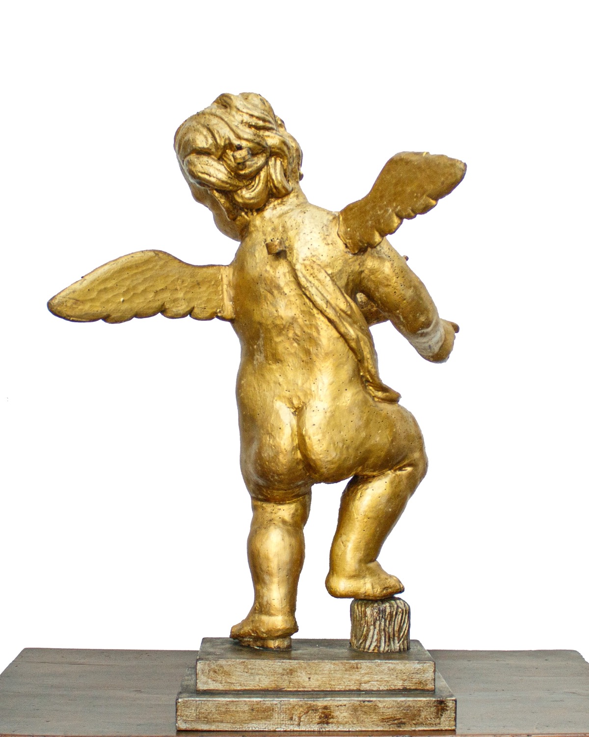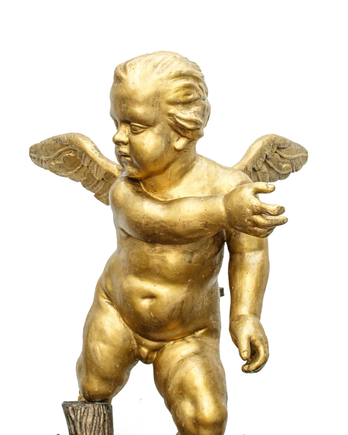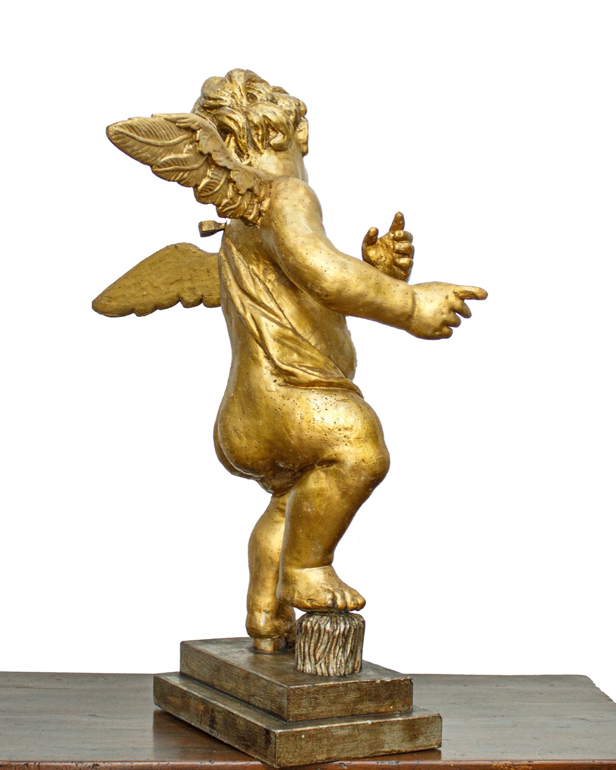 Coppia di angeli in legno intagliato e dorato. Roma, XVII secolo