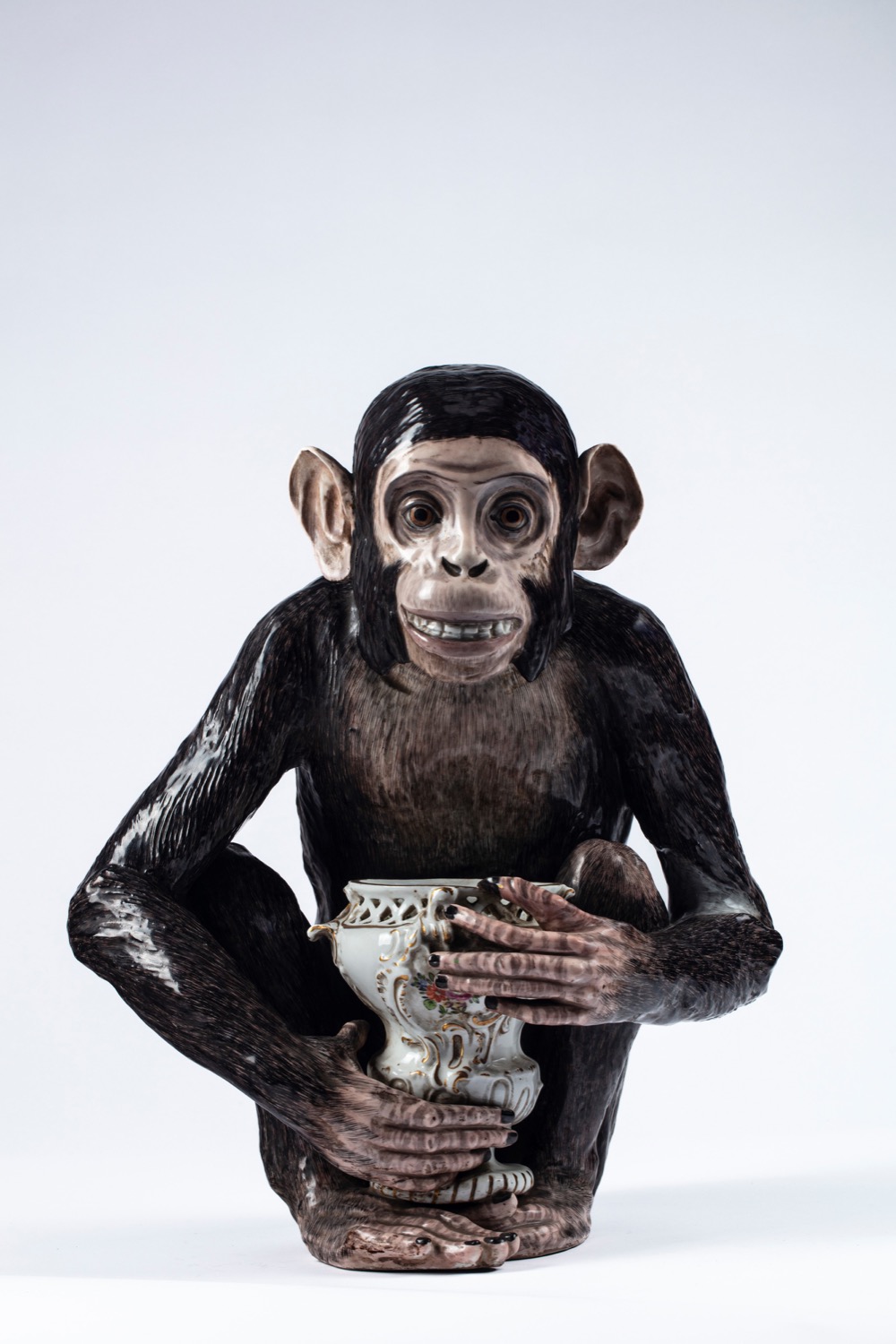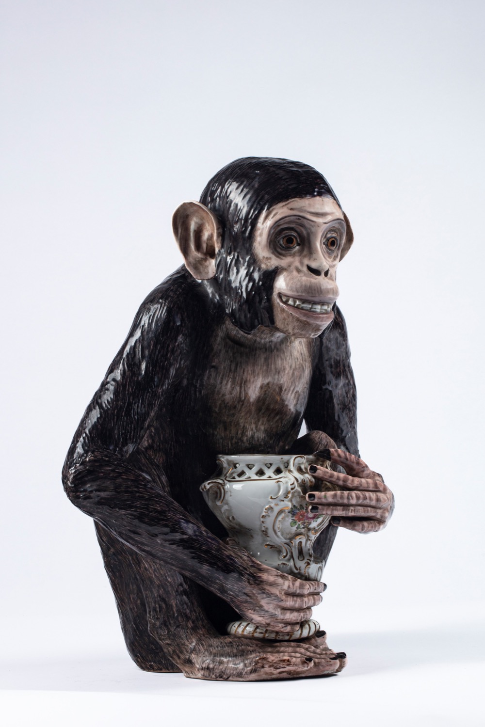 Scimmia accovacciata in porcellana. Manifattura di Capodimonte, fine secolo XIX/inizi secolo XX