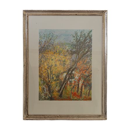MICHELE CASCELLA (1892 - 1989) Casa nel bosco a primavera, multiplo su carta 60 x 45 cm