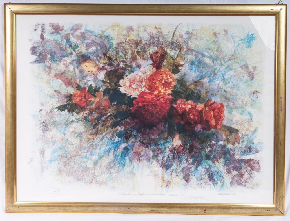 RENZO VESPIGNANI (Roma, 1924 - 2001) Vaso con fiori, multiplo su carta 60 x 80 cm