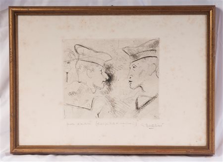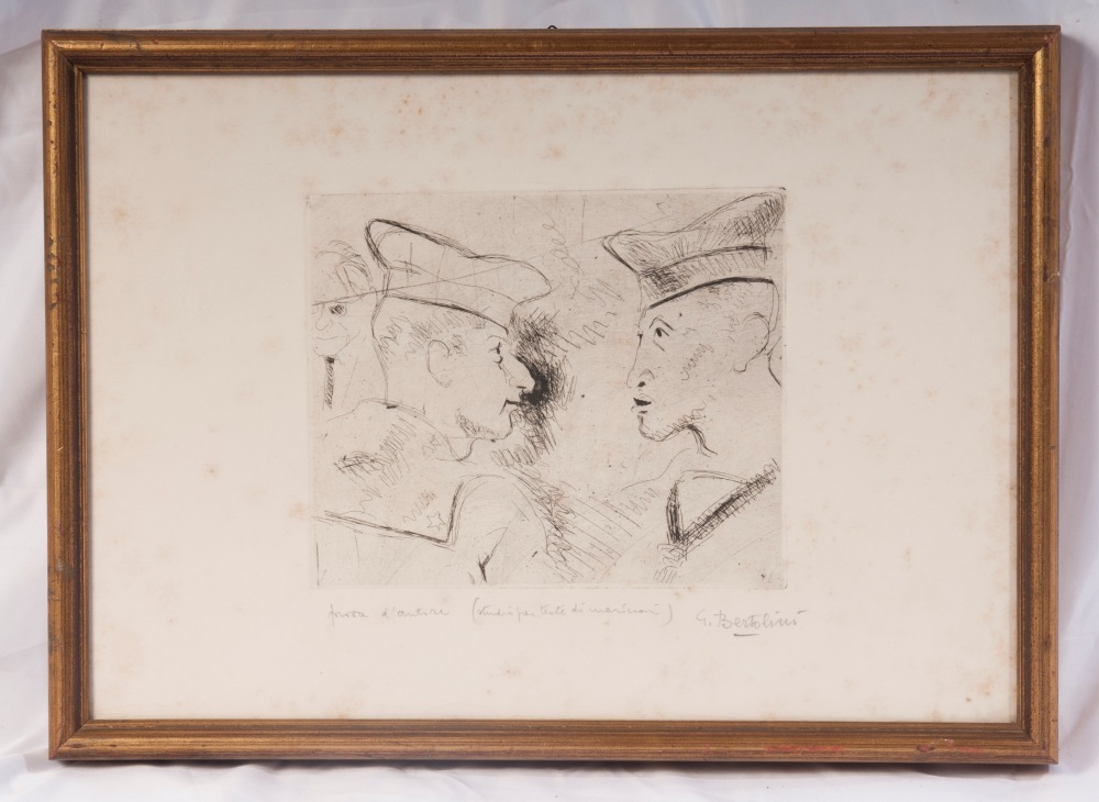GIUSEPPE BERTOLINI (Viareggio, 1938 - ) Studio per teste di marinai multiplo su carta 21 x 24,5 cm