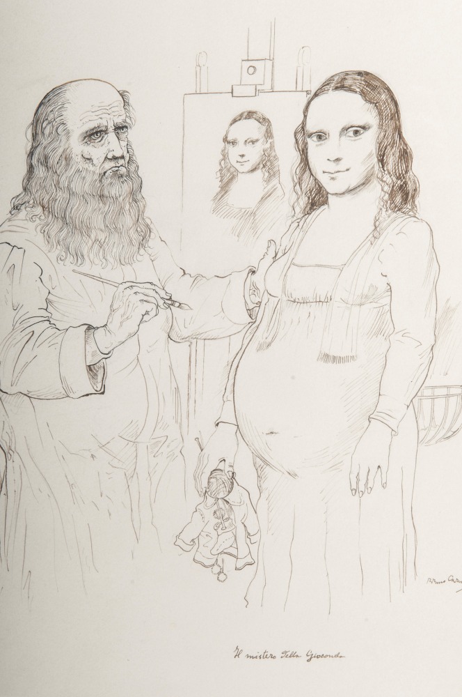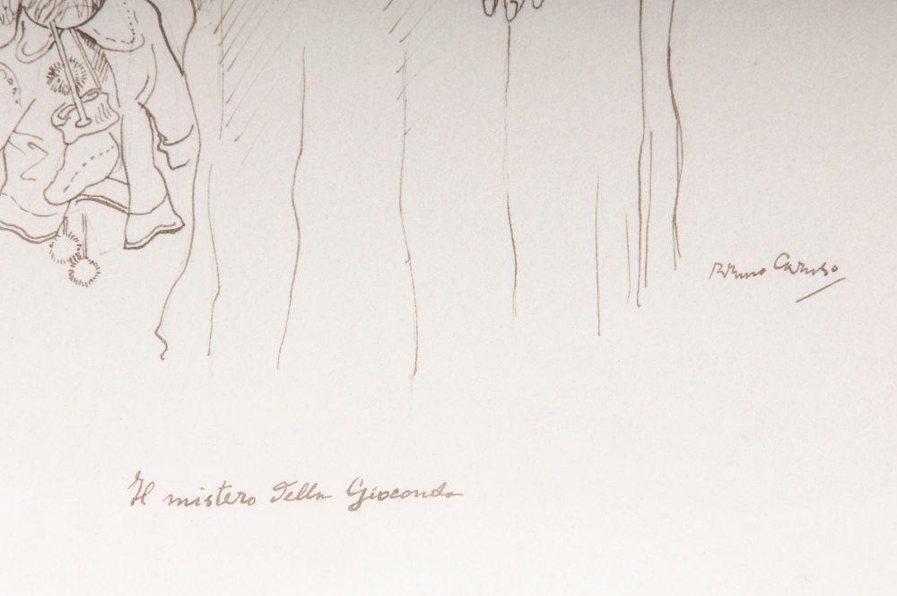 BRUNO CARUSO (Palermo, 1927 - Roma, 2018) Il mistero della Gioconda, multiplo su carta 45 x 30 cm