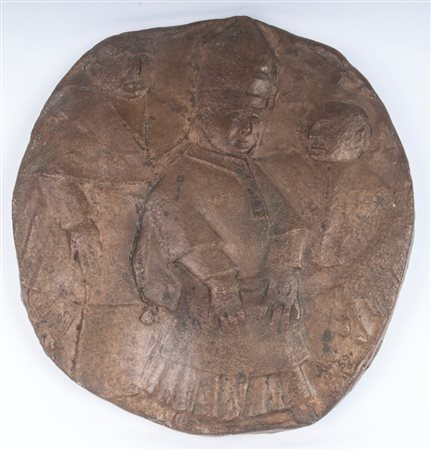 Papa ed ecclesiastici , fusione in bronzo diametro 27 cm
