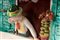 "Lui e Lei ",Coppia di placche in rilievo, formatura a stampo in ceramica policroma.