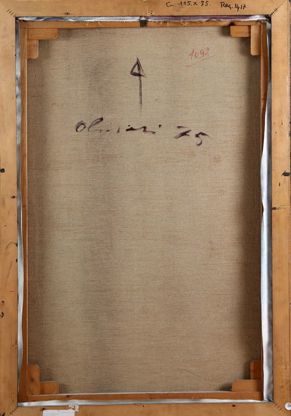 CLAUDIO OLIVIERI 1934 Senza titolo, 1975 Olio su tela, cm. 120 x 80 Firmato e datato sul retro Autentica dell'artista su fotografia ESPOSIZIONI: " Struttura - Pittura ", Museo d'Arte Moderna e Contemporanea Senigallia, 2009 PUBBLICAZIONI: " Arte Contemporanea ", dicembre 2009, p. 9 Prov. Collezione Privata