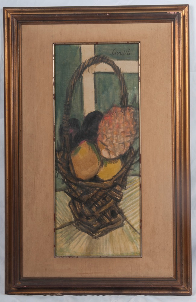ANTONIO CARDILE (Taranto, 1914 - Roma, 1986) Cesto con frutta dipinto ad olio su tela 65 x 25 cm