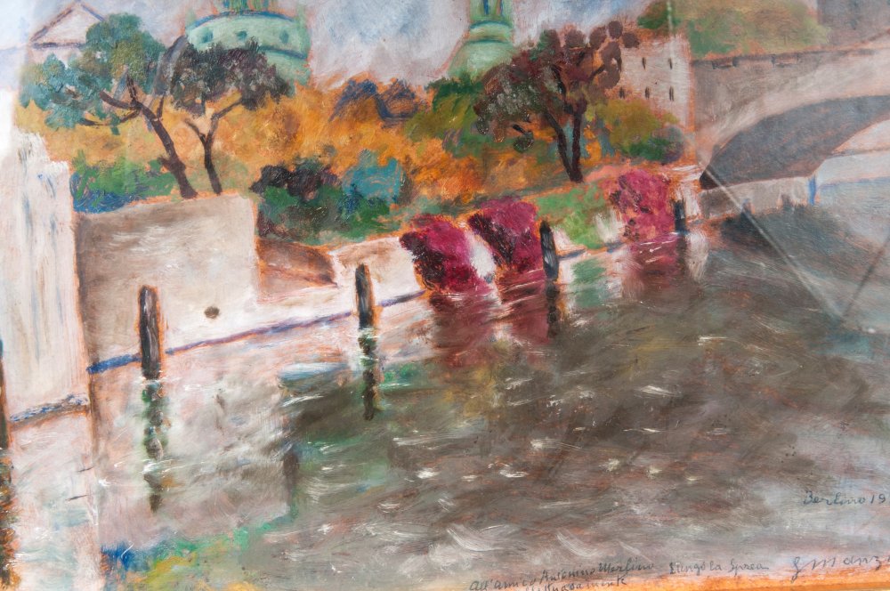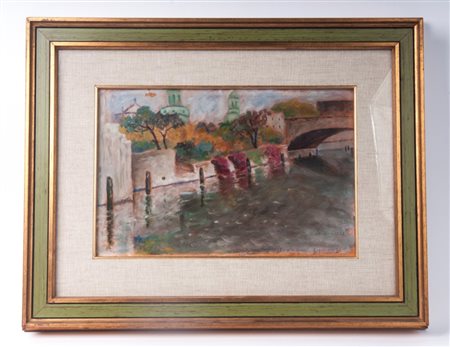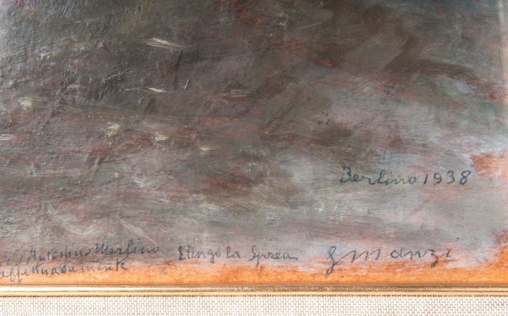 LUIGI MANZI (1895 - 1985) Lungo la Sprea Berlino 1938 dipinto ad olio su cartone 23 x 34 cm