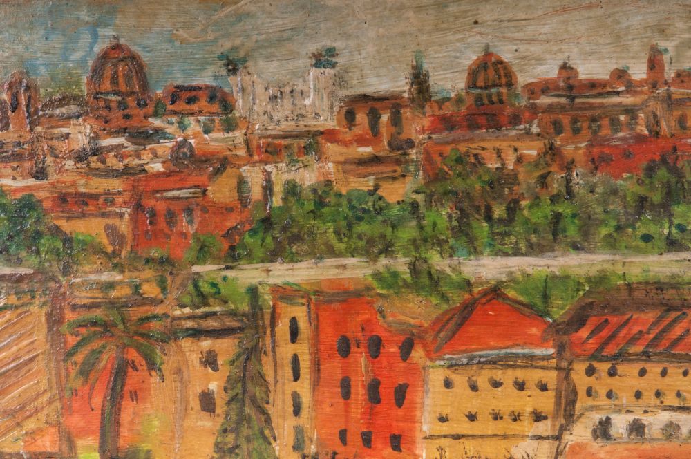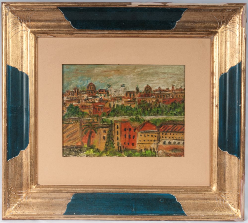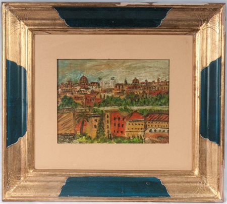 CARLO QUAGLIA (Terni, 1903 - Roma, 1970) Scorcio di Roma dipinto ad olio su tavola 21 x 28 cm