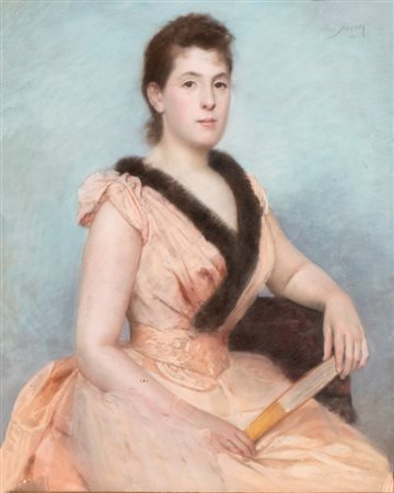 JOSE FRAPPA (Saint-Étienne, 1854 - Parigi, 1904) Ritratto femminile 1889 Olio su cartone 91 x 70 cm