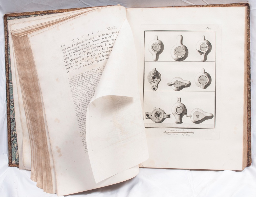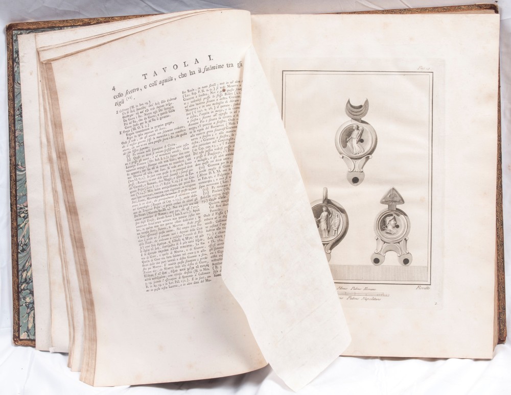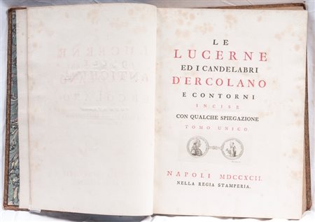 Le lucerne e candelabri di Ercolanotomo unico regia stamperia di Napoli 1792. Rilegato in pelle con finiture in oro zecchino
