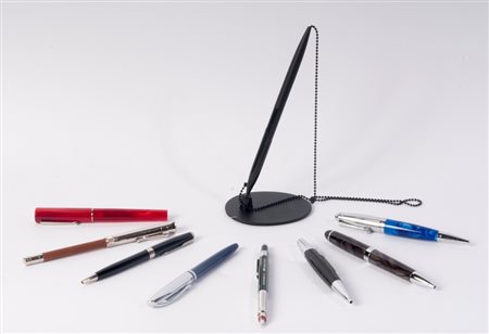 6 penne biro di quali una Parker, una Pelikan , una Dal Negro, una Faber Castell, una Bagutta ed un penna da scrivania Write Down in scatole originale; una penna stilografica Delta in astuccio originale con garanzia e due matite Faber Castell