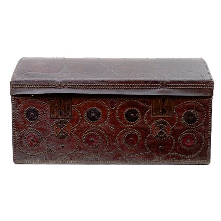 Baule in cuoio e legno, arte indo/portoghese, inizio XIX secolo 57 x 106 x 57 cm