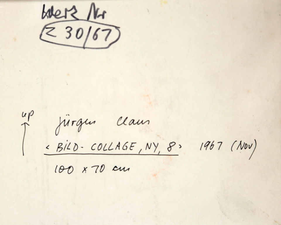 JURGEN CLAUS 1935 " Bild - collage Ny 8 ", 1967 Pittura e collage su cartone,...