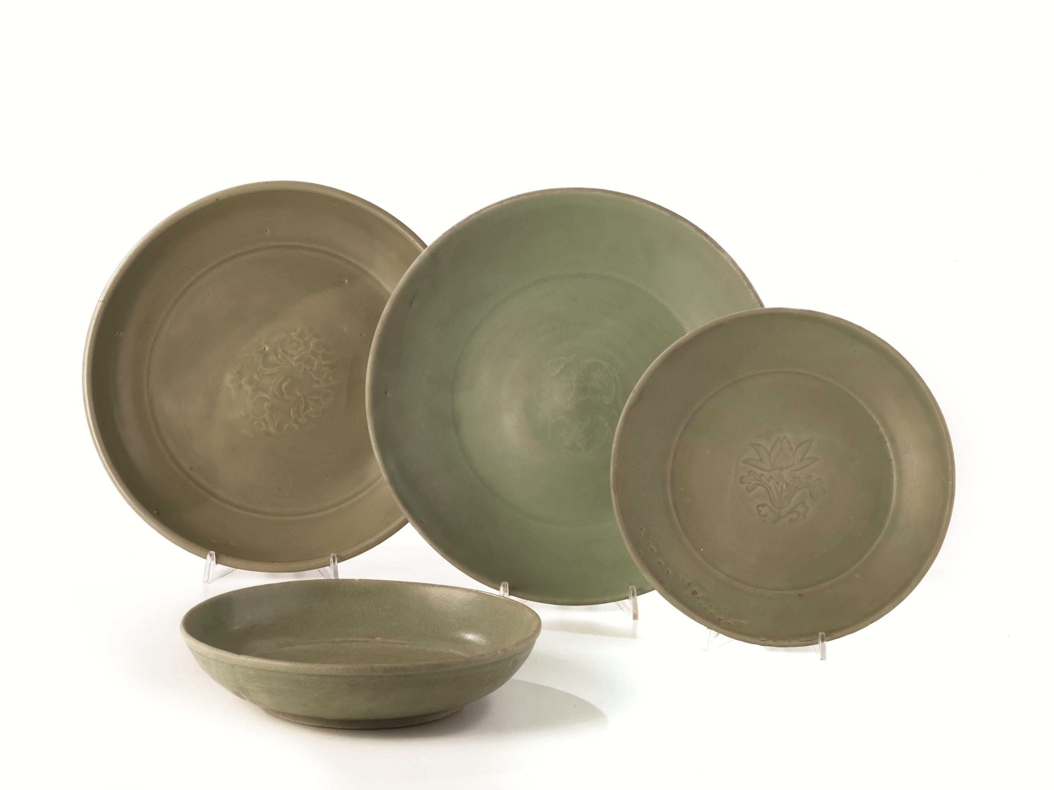 in porcellana celadon, decorato con drago centrale stilizzato, diam. cm 33