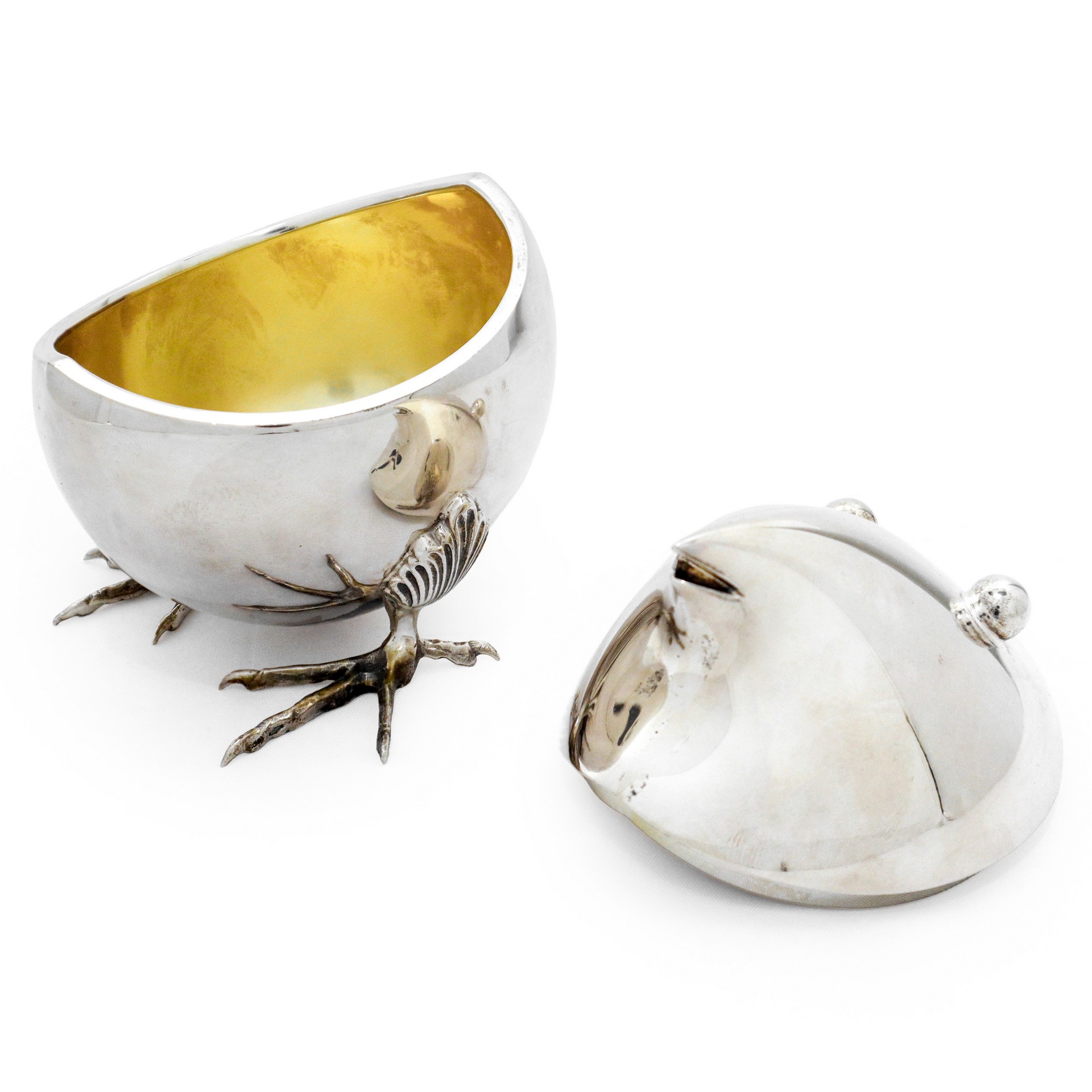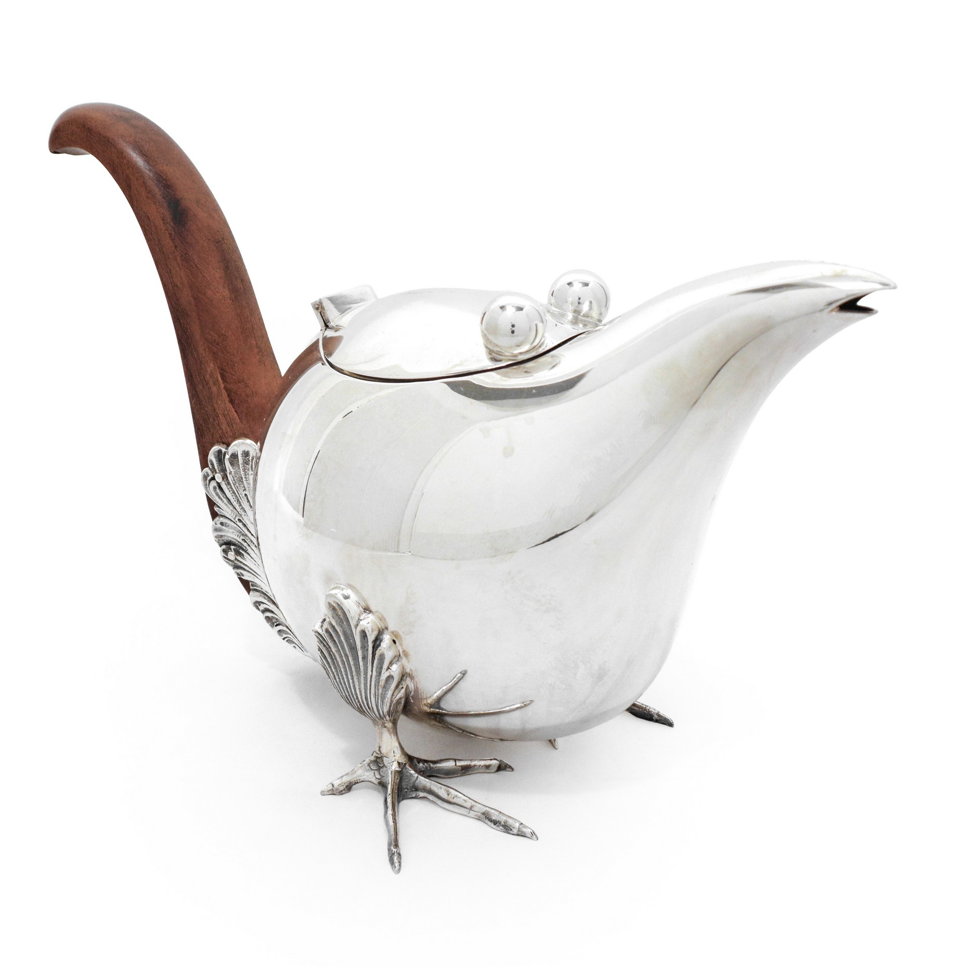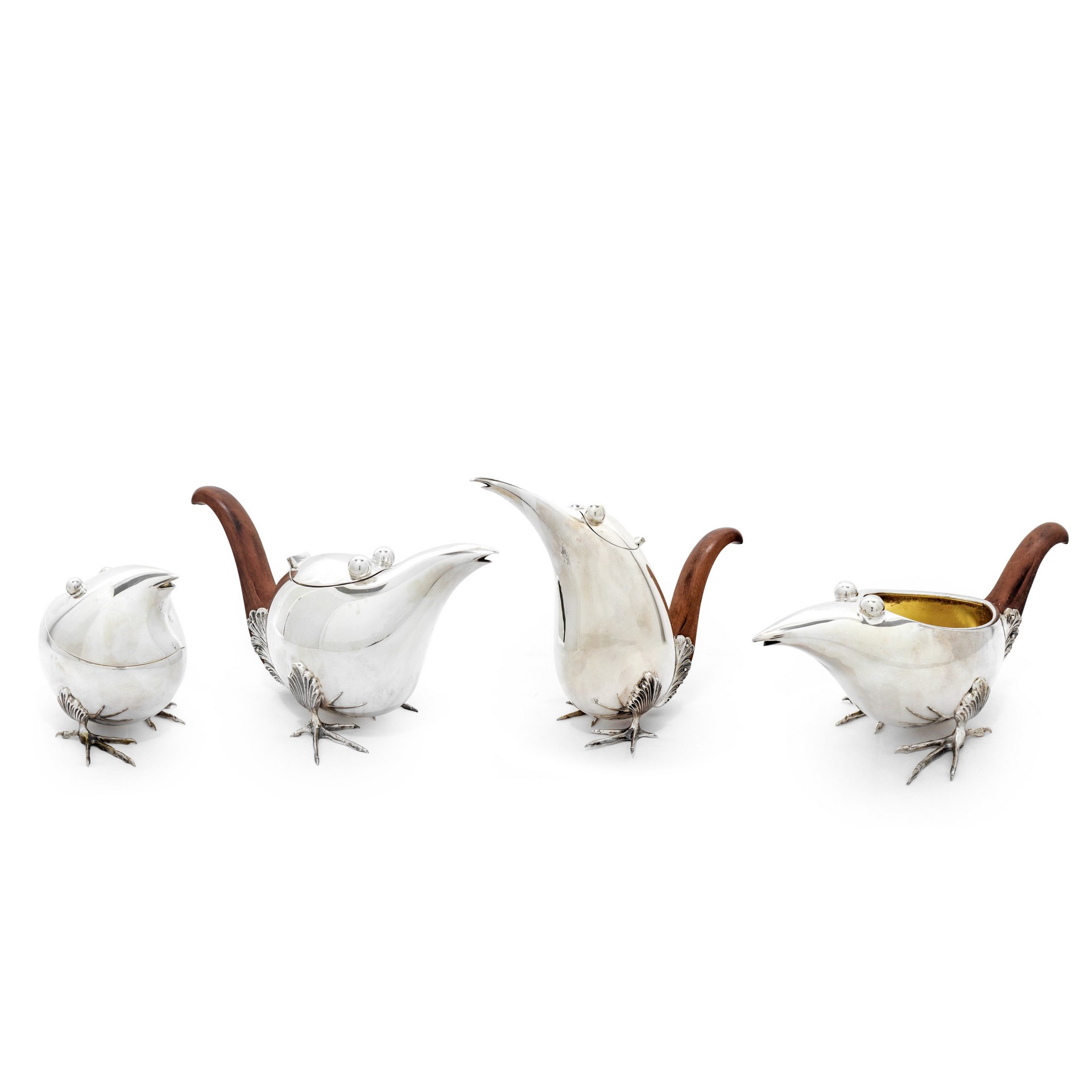 Servizo da te e caffè in argento 800 con fattezze di volatili