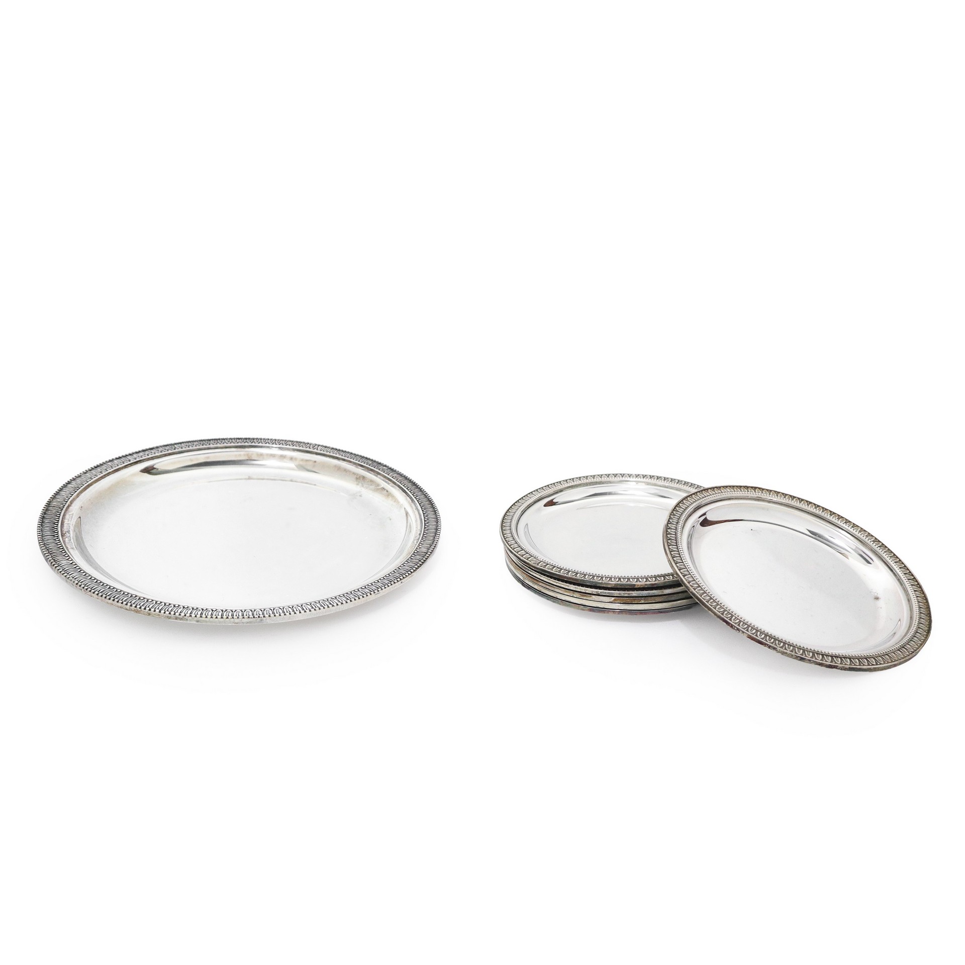 Sottobottiglia e n°6 sottobicchieri in argento 800