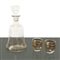 Bottiglia da liquore con perfili dorati con due piccoli bicchieri abbinati