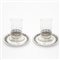Coppia di bicchieri da tè con base in sheffiel con decori a festoni e vetro bulinato con rispettivi piattini decorati a festoni