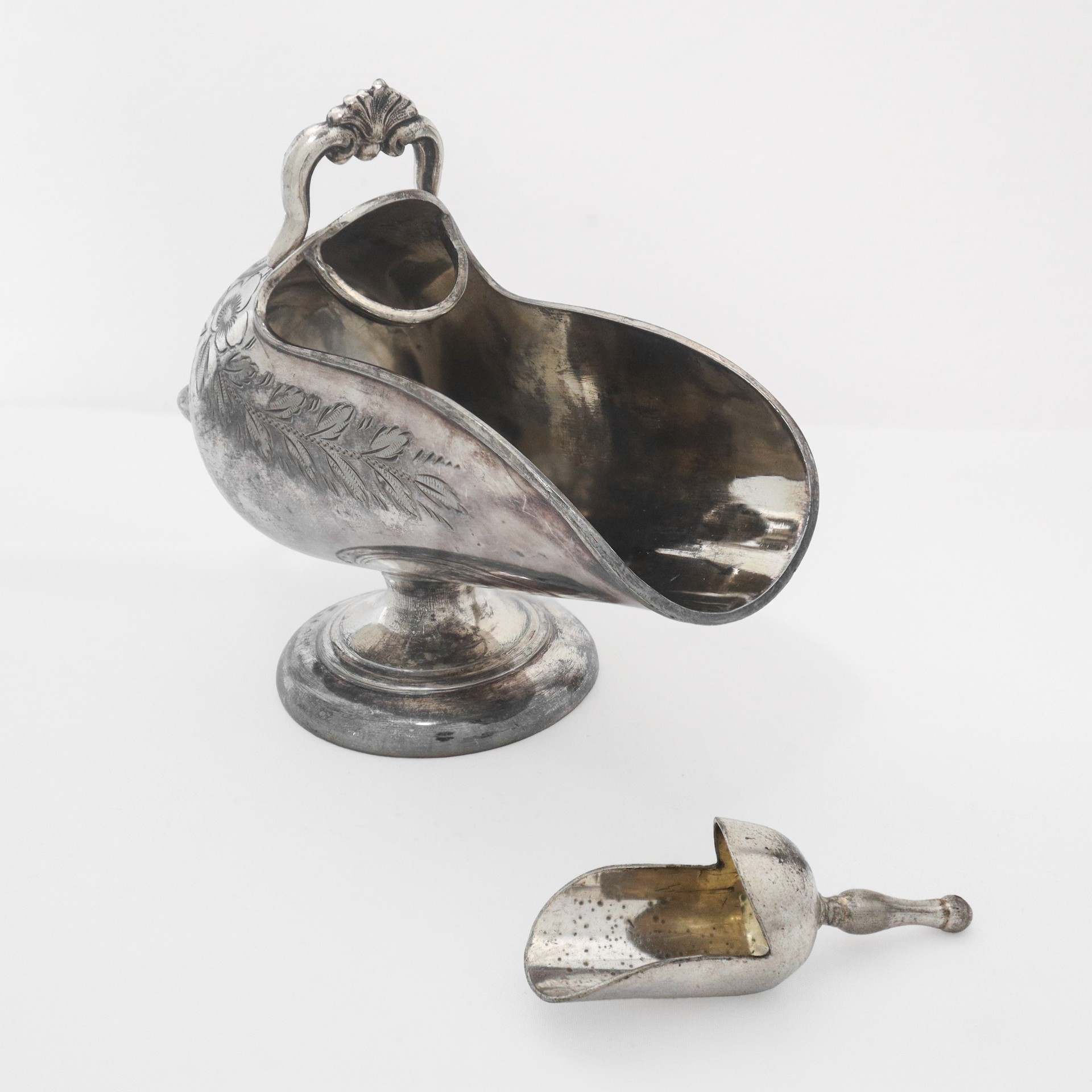 Zuccheriera in sheffield decorata a sbalzo dotata di cucchiaino h cm 13X16