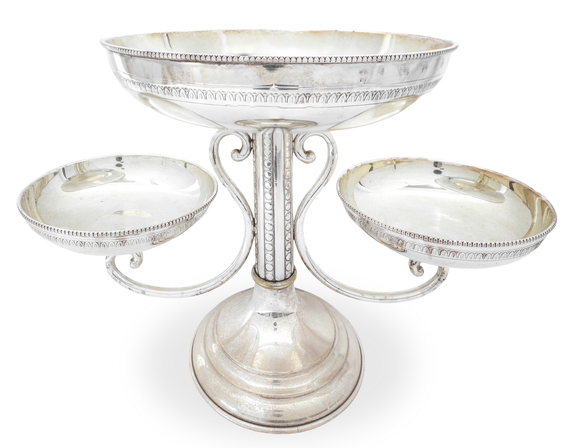 Alzatina con tre piatti in metallo argentato h cm 24X36