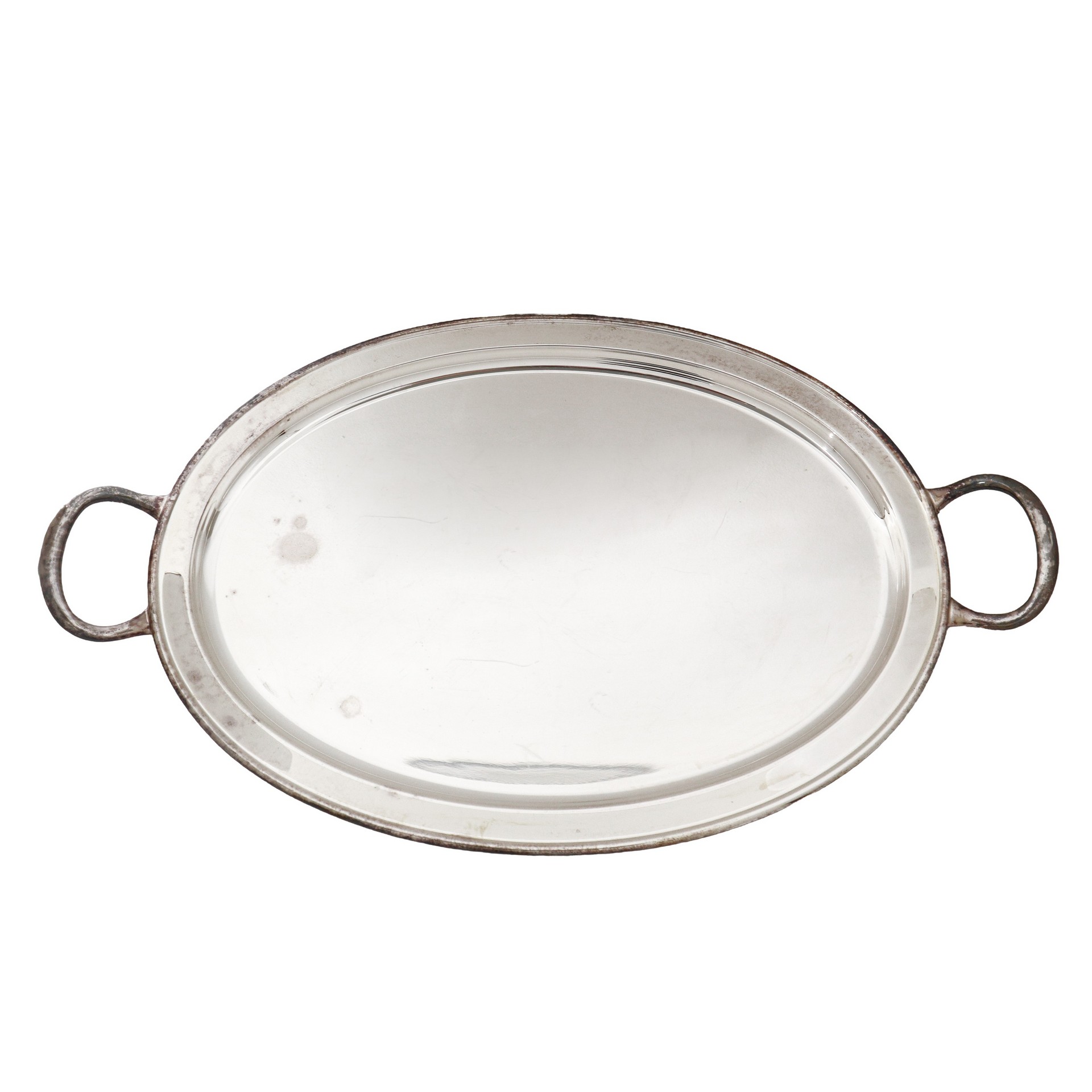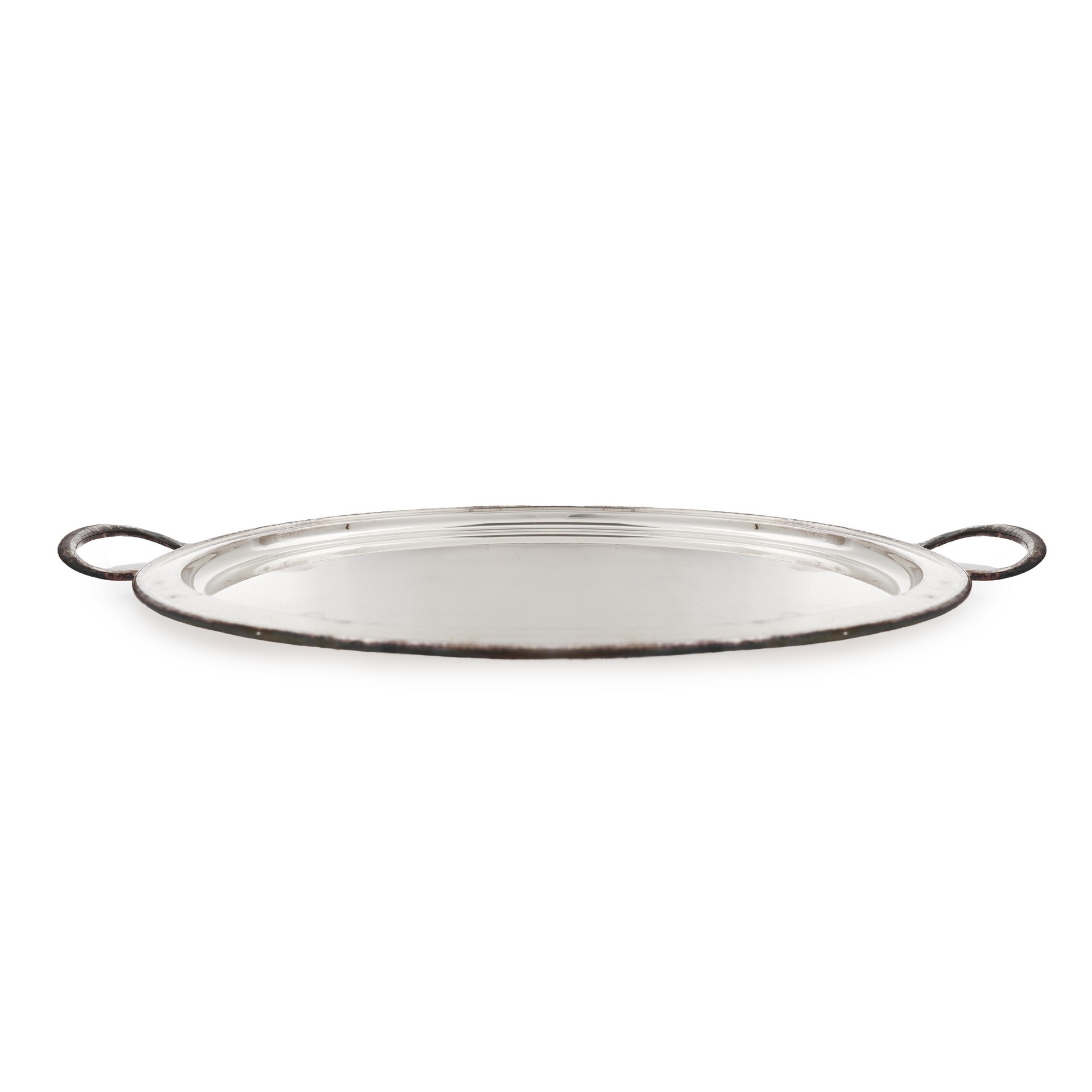 Vassoio ovale con manici in Sheffield. Cm 61x36 Firmato Zanetto. Firmato Zanetto.
