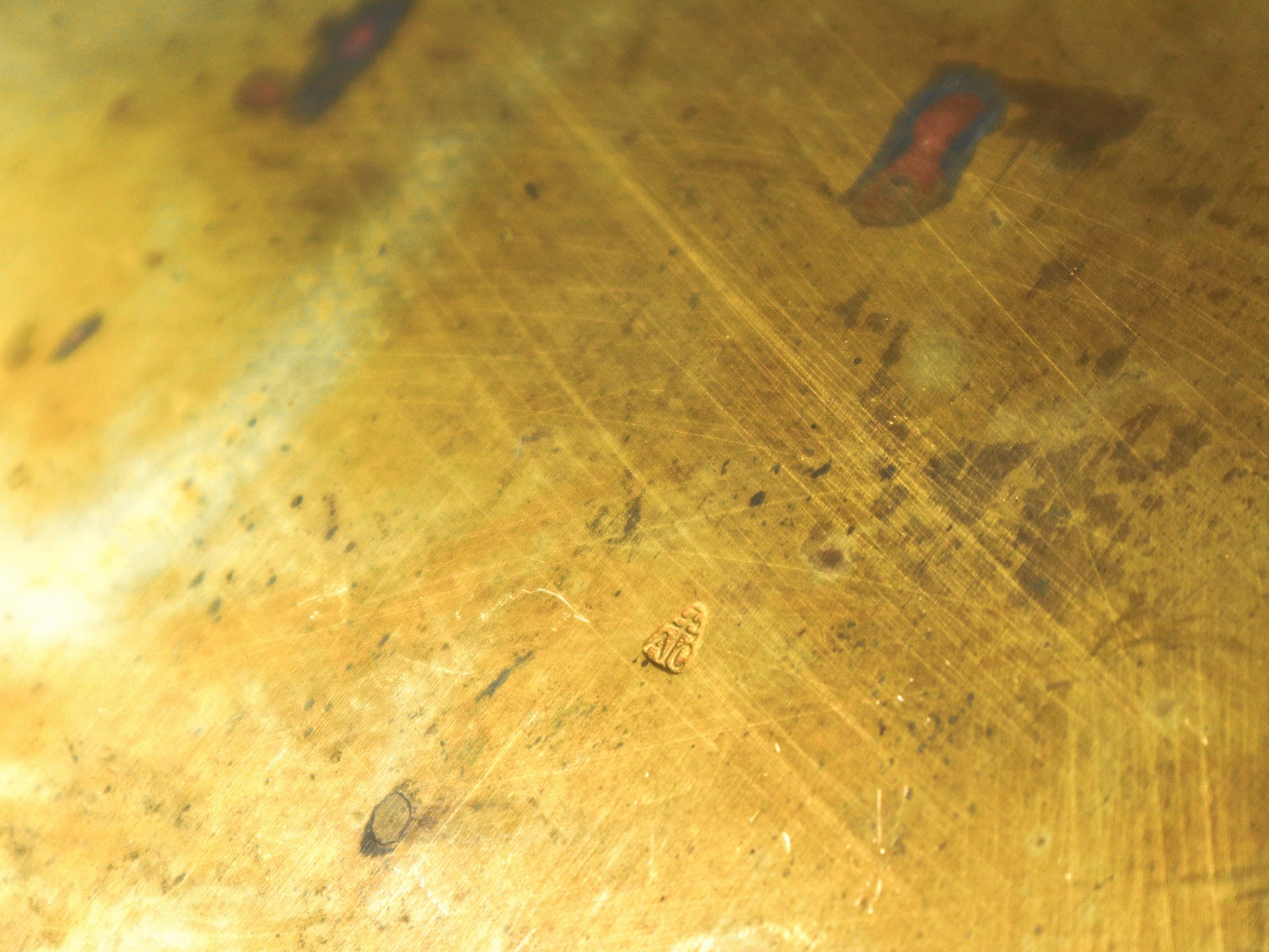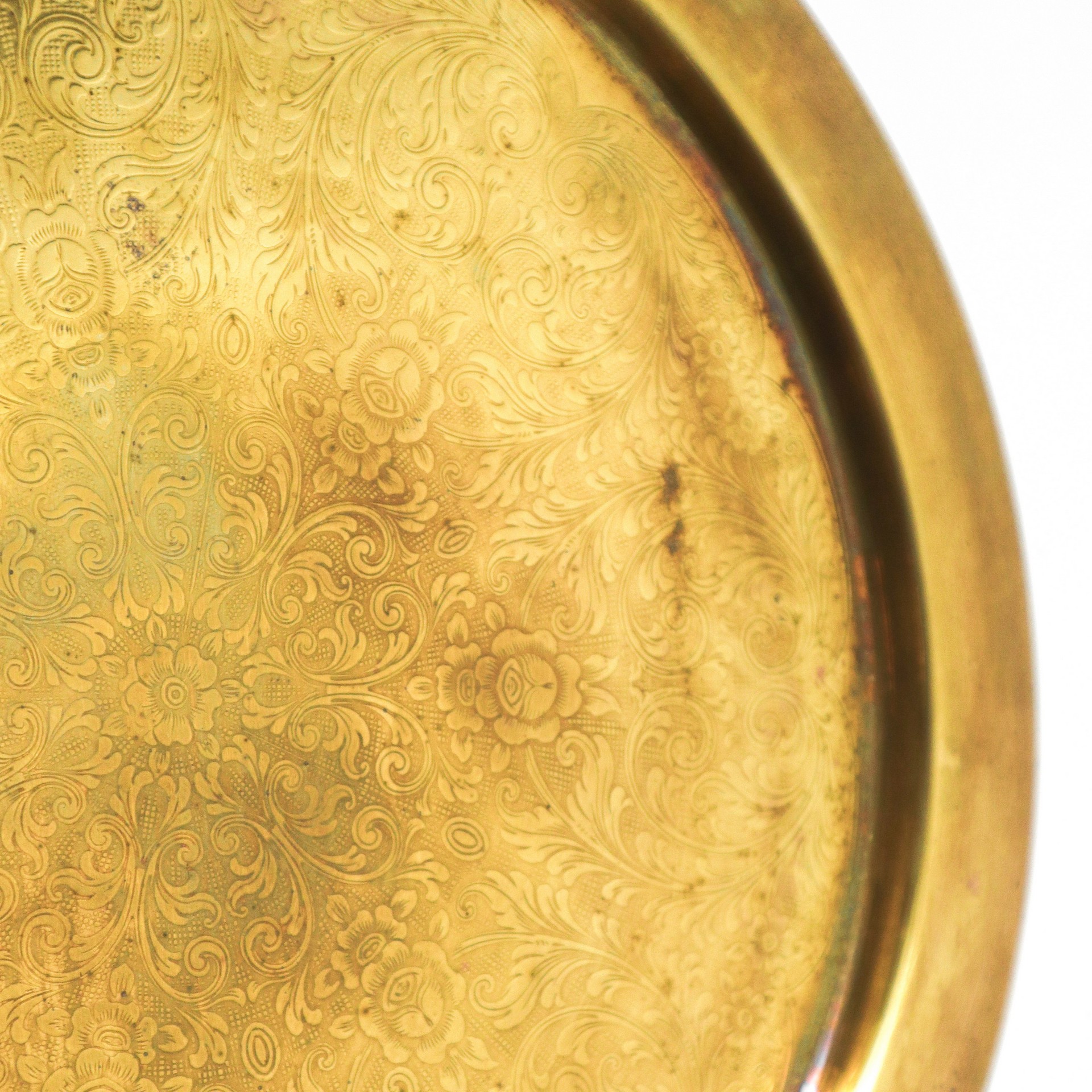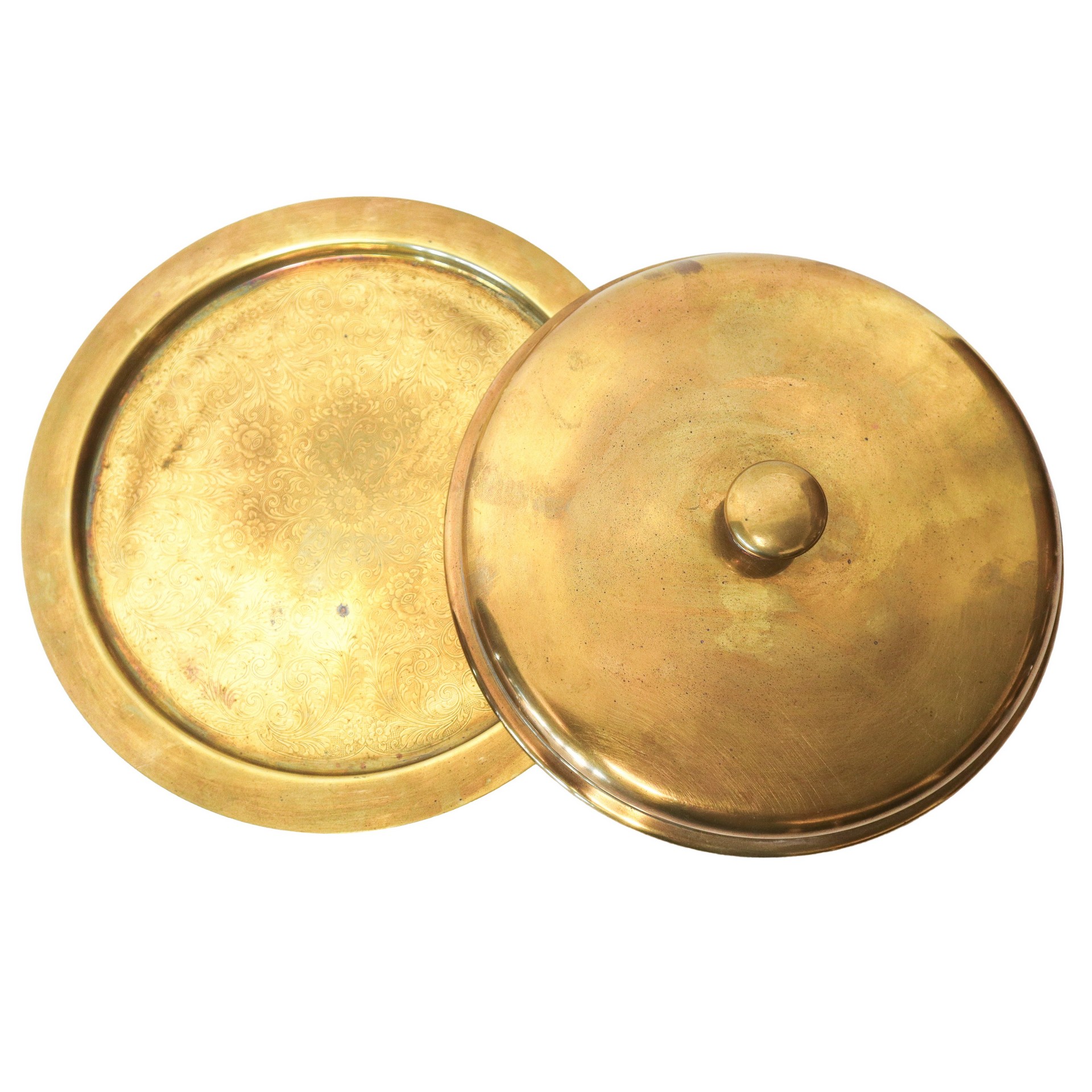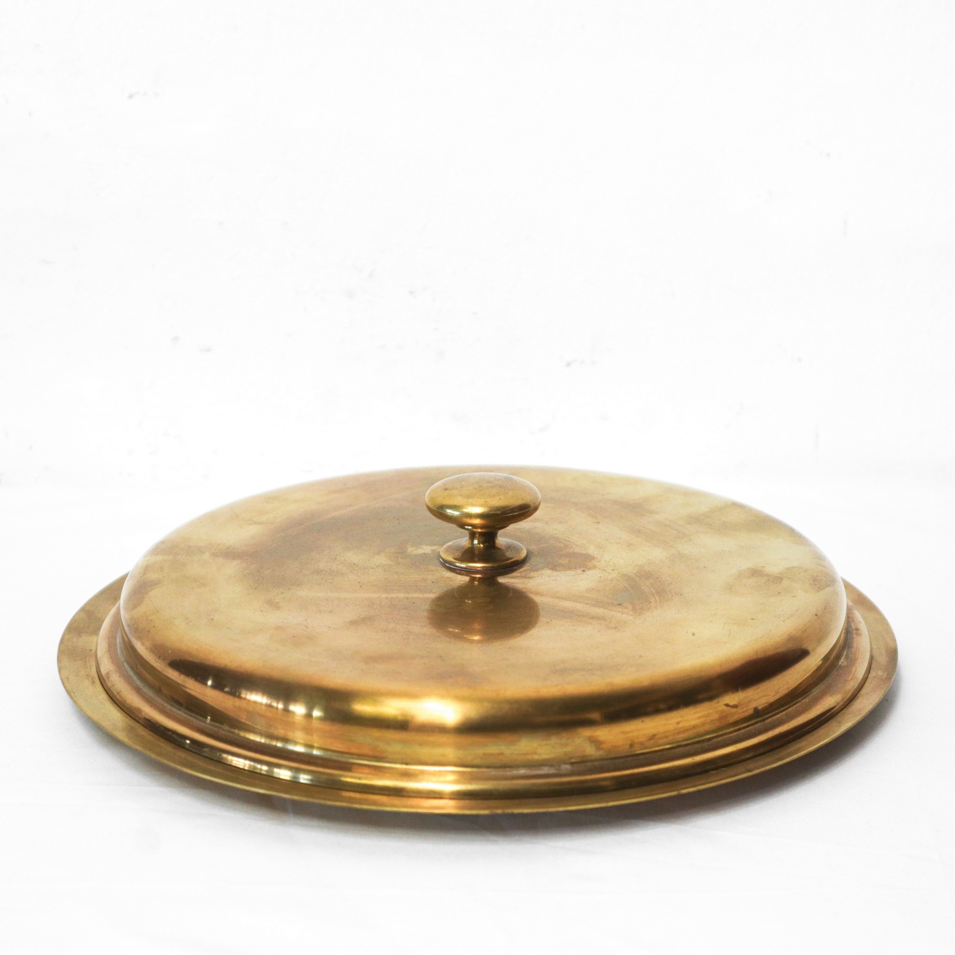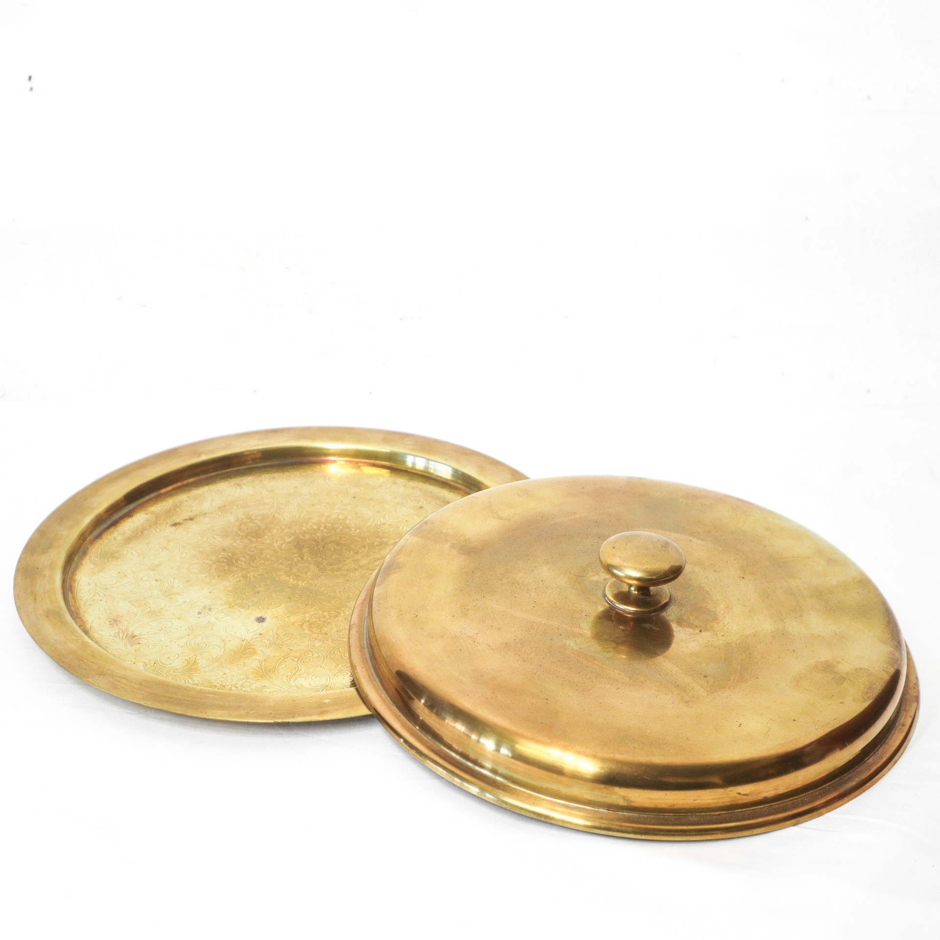 Portatorte in ottone dorato con coperchio con decoro floreale sul piatto