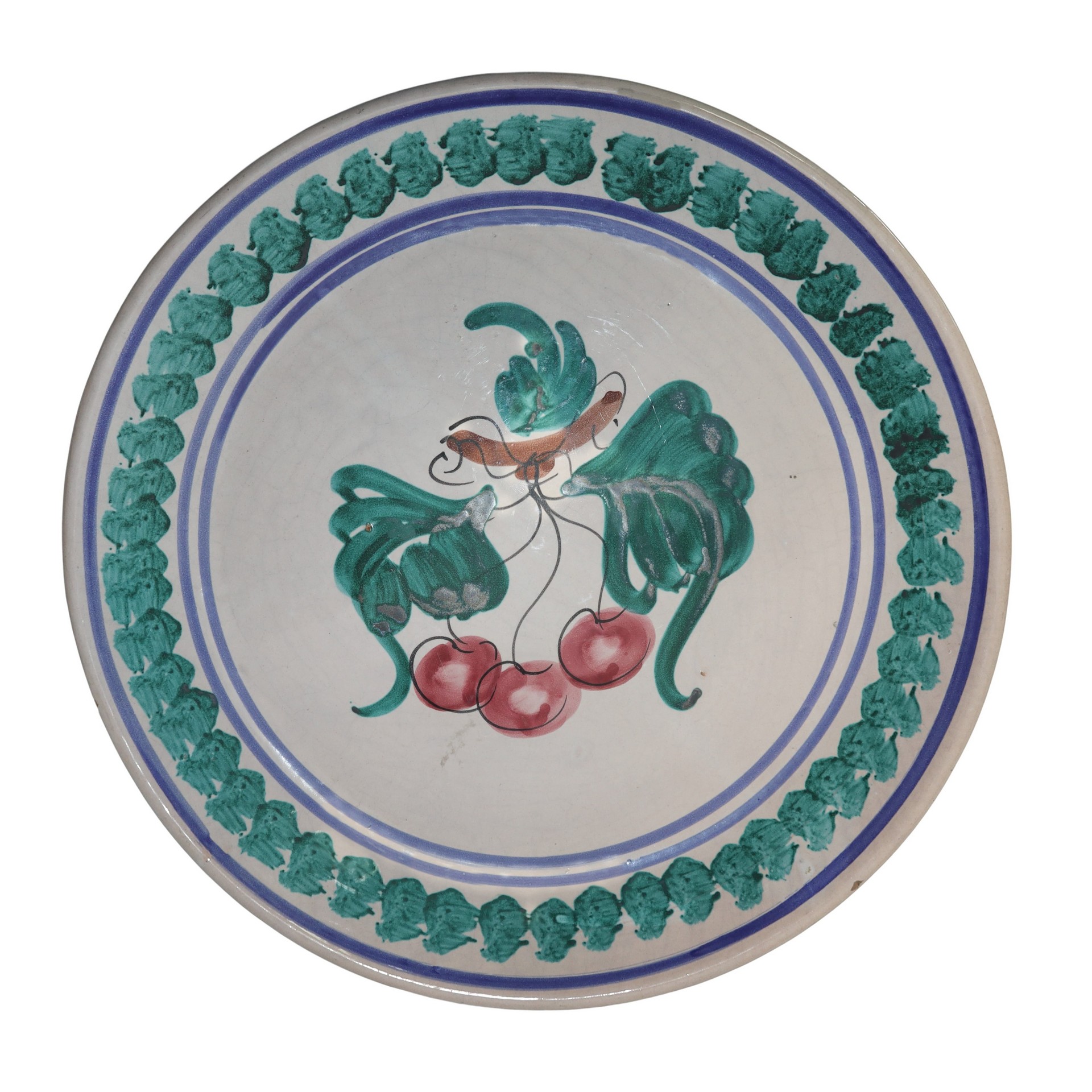 Grande piatto decorativo in ceramica di Caltagirone raffigurante ciliegie