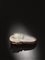 in giada verde pallido con inclusioni ruggine, raffigurante felino appoggiato su una foglia, lung. cm 4 ca