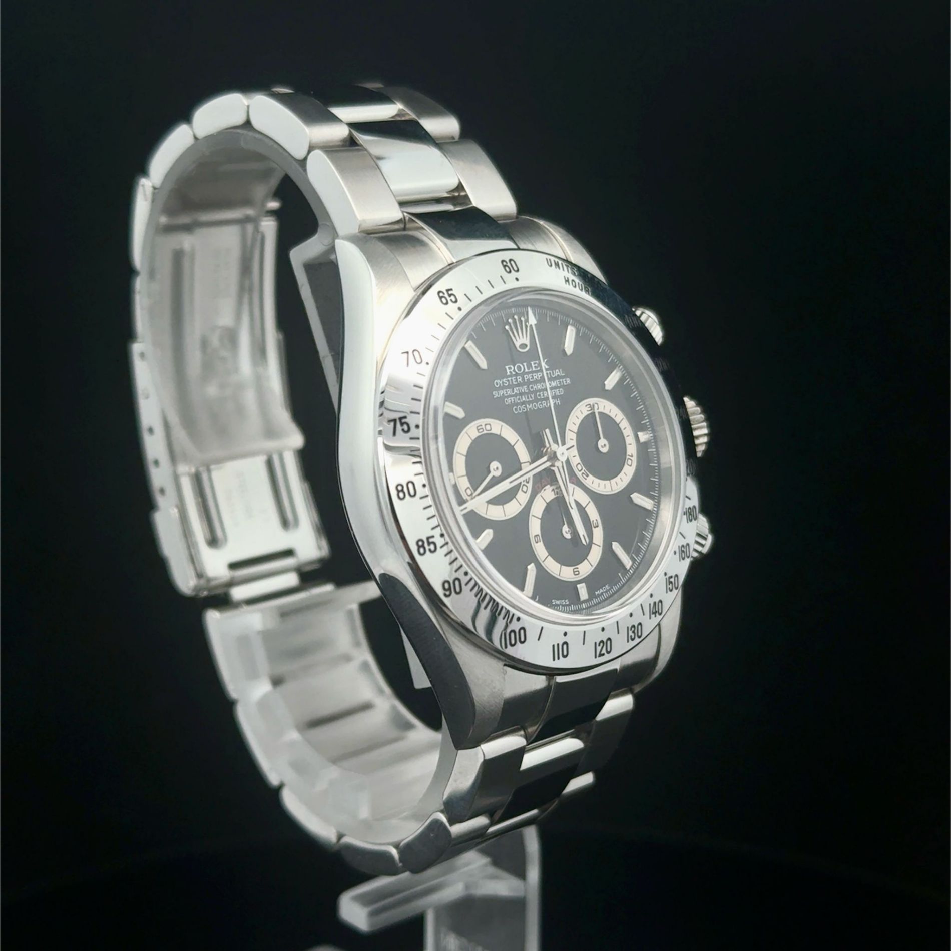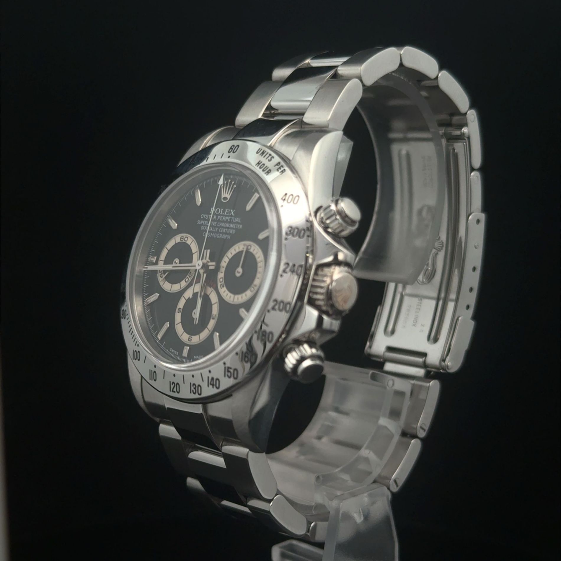 Marca Rolex Modello (Orologio) Daytona Numero di referenza 16520 Carica Automatico Materiale della cassa Acciaio Materiale cinturino Acciaio Anno di produzione 1999 Condizione ottimo Corredo documenti originali, no box Carica Automatico Movimento zenith el primero Materiale della cassa Acciaio Diametro 40 mm Impermeabile 10 ATM Materiale lunetta Acciaio Vetro Vetro zaffiro Quadrante nero Numeri sul quadrante Senza numeri Cinturino Materiale cinturino Acciaio Colore cinturino Acciaio Chiusura Déployante Materiale chiusura Acciaio Un anno di garanzia del negozio - COMMISSIONE D’ASTA 25%