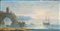 Orazio Grevenbroek (attivo a Napoli, circa 1670 - 1730) - Paesaggio costiero con arco roccioso e velieri in lontananza