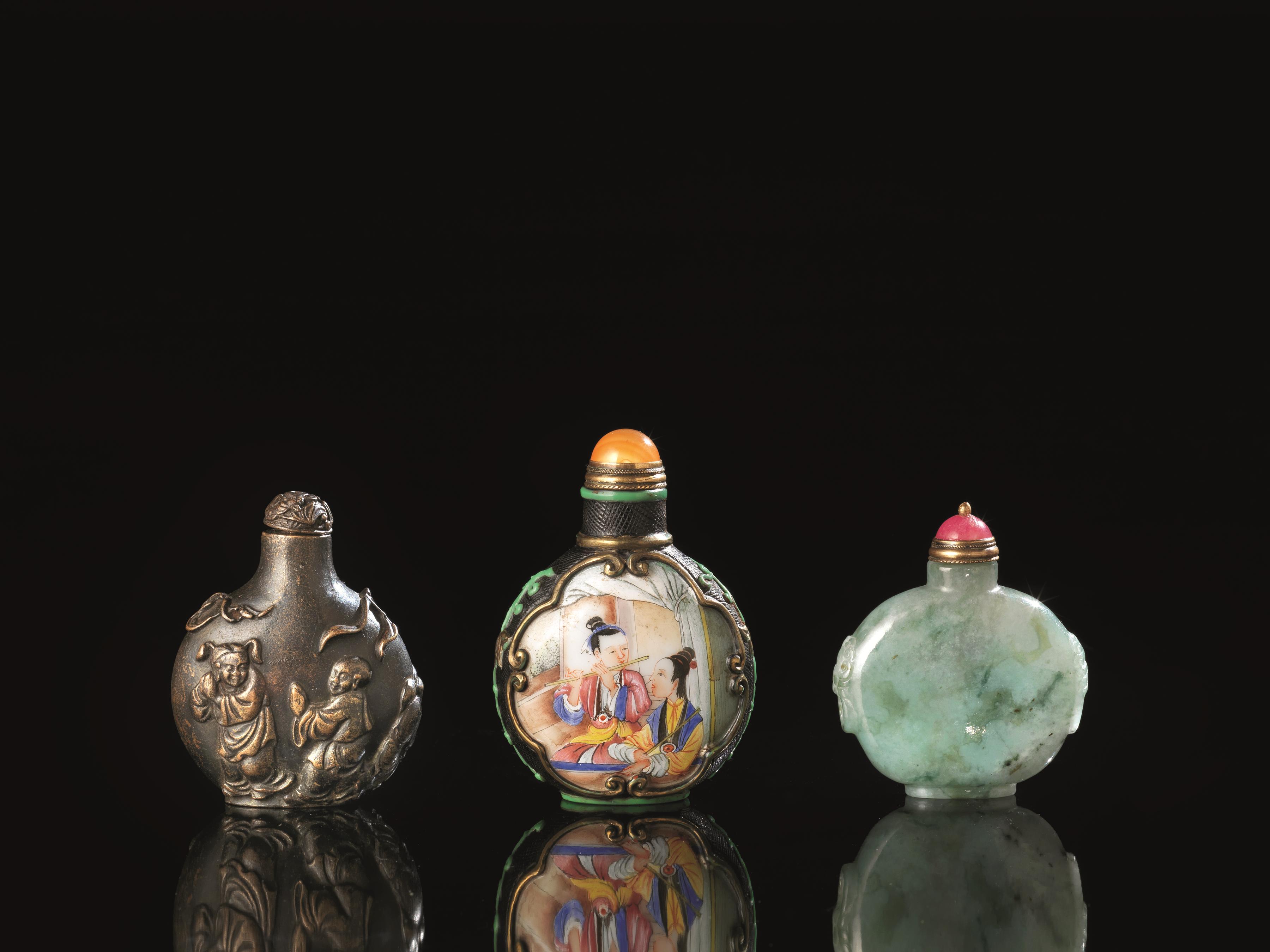 TRE SNUFF BOTTLES, CINA, SECC. XIX-XX