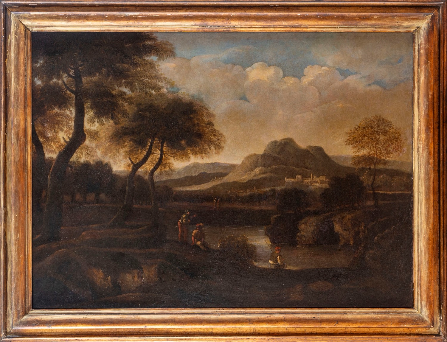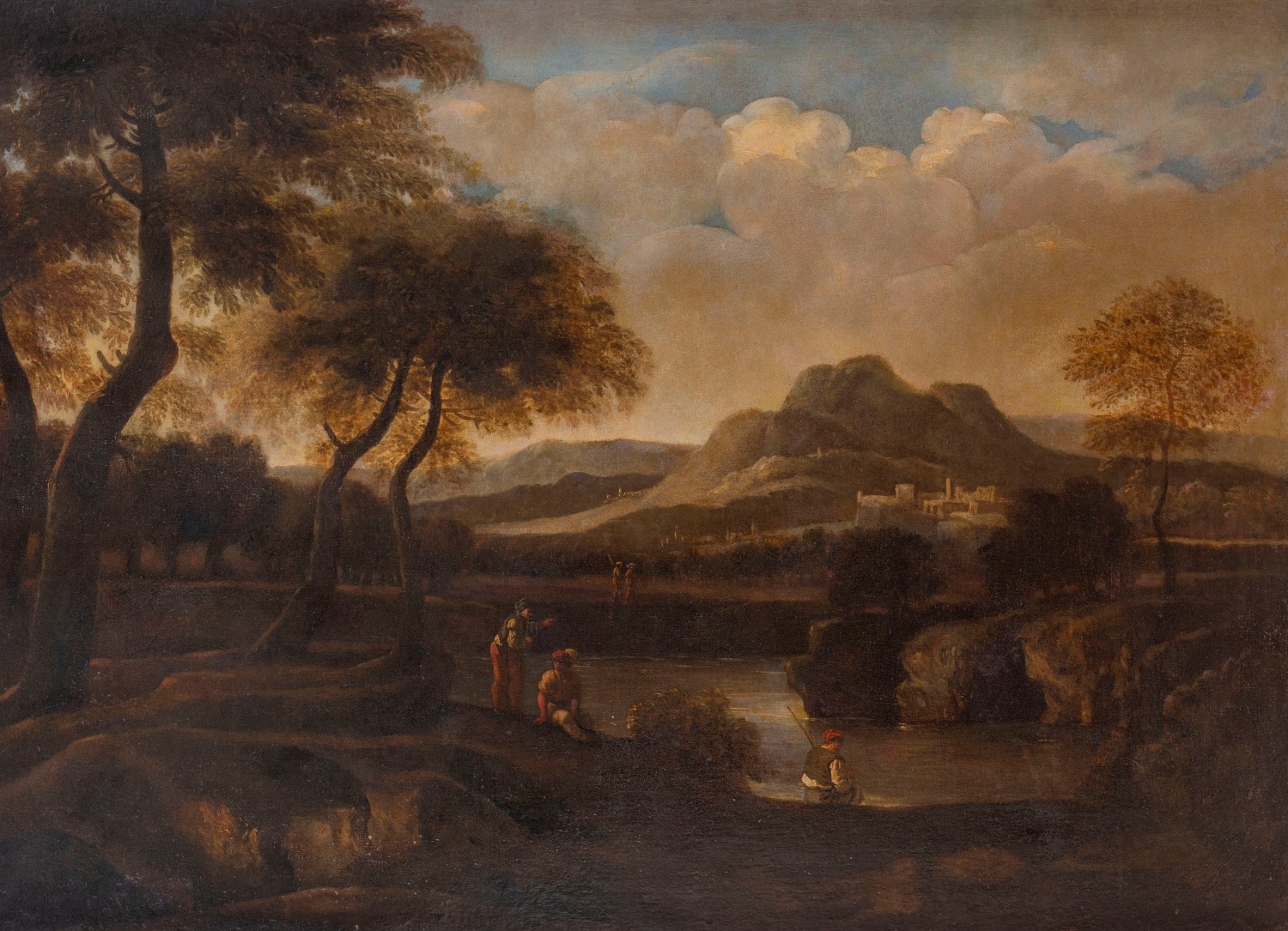 Scuola italiana, fine secolo XVII - inizi secolo XVIII - Paesaggio fluviale con pescatore in riva