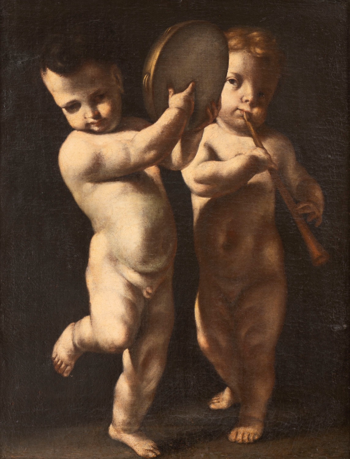 Scuola emiliana, secolo XVII - Due putti musicanti
