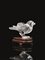 in cristallo di rocca raffigurante uccellino, alt. cm 9, poggiante su base in legno