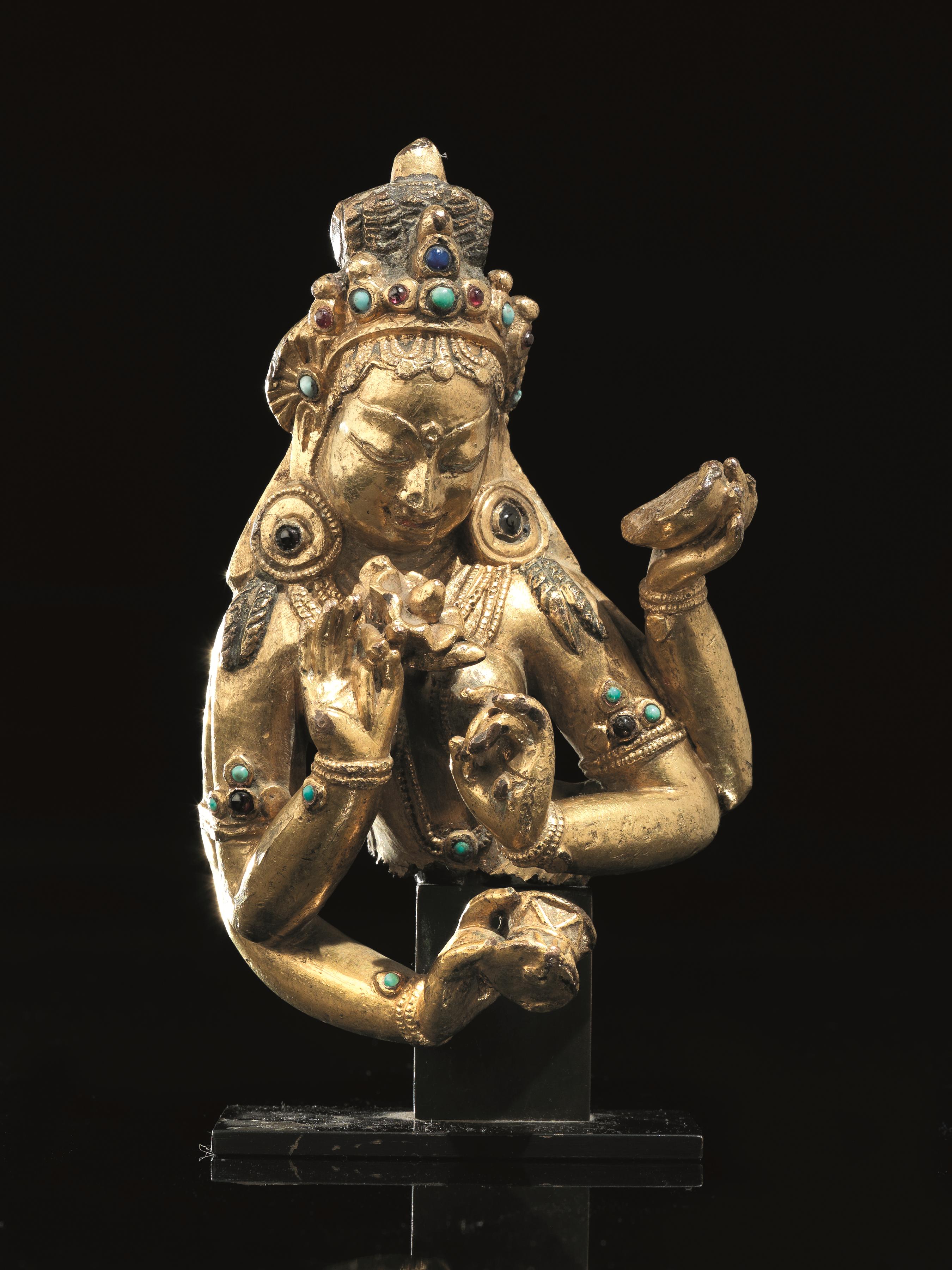 A gilt bronze with semiprecious stones fragment of a Dakini Tibet 15th/16th century