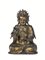 in bronzo dorato raffigurante Guanyin assisa in dhyanasana, la mano destra regge un ramoscello di salice e la sinistra una coppa; il volto, con espressione contemplativa, è sormontato da una elaborata corona a più punte, centrate dalla figura dell’Amitabha Buddha, il bhodistva elegantemente vestito con una morbida veste fluente e con un bordo floreale finemente cesellato, alt. cm 36