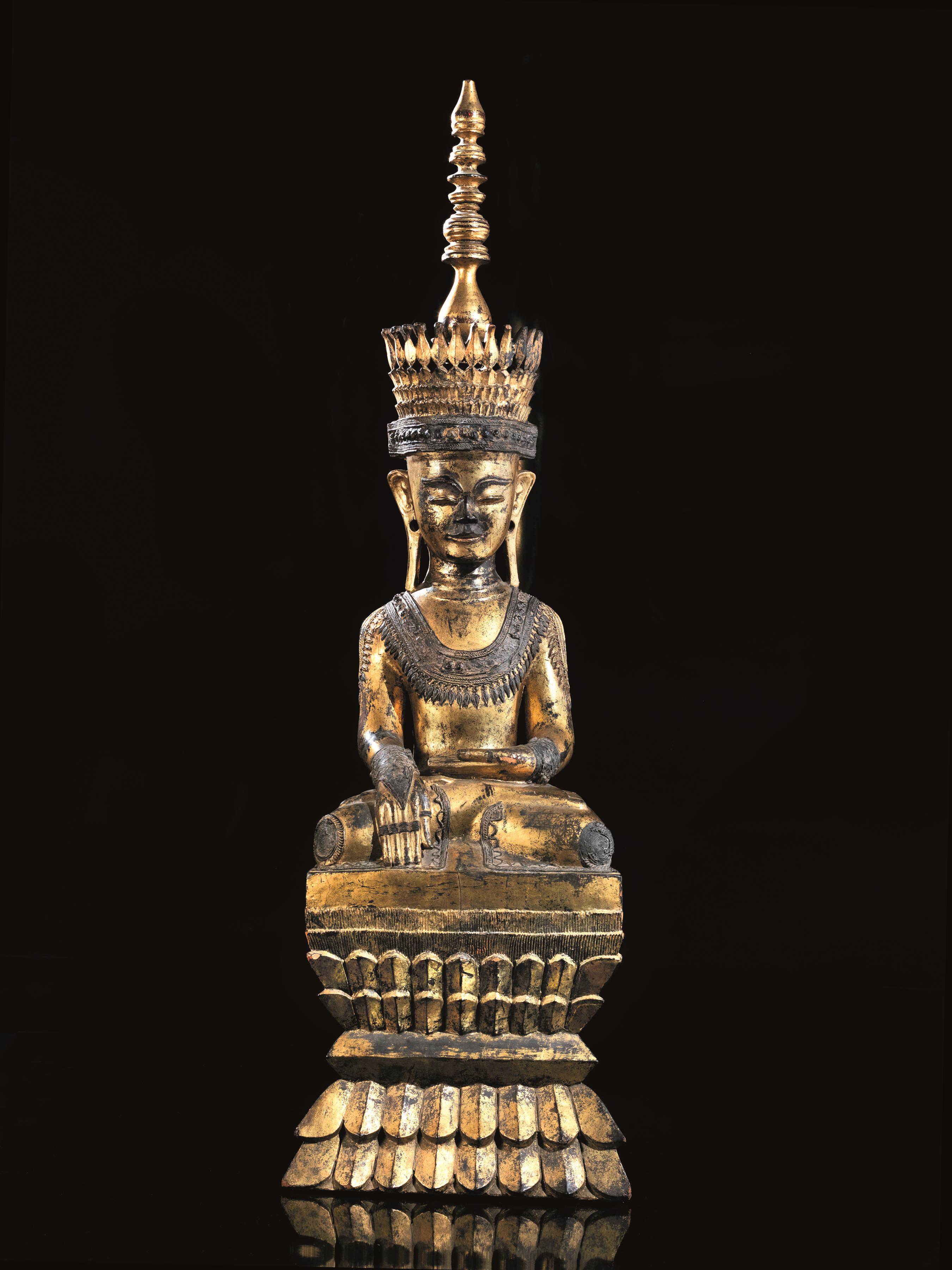 BUDDHA, THAILANDIA, SEC. XX,in legno dorato, alt. cm 60 A gilted wood...